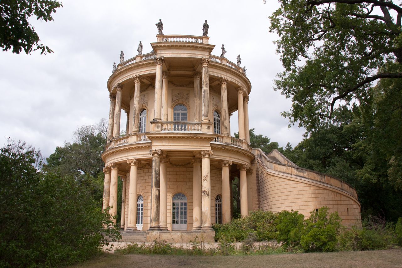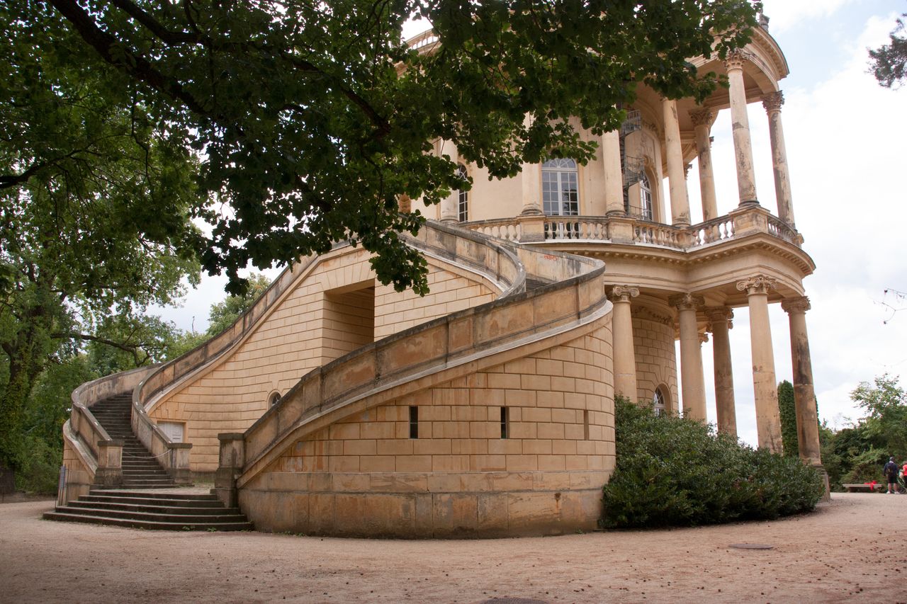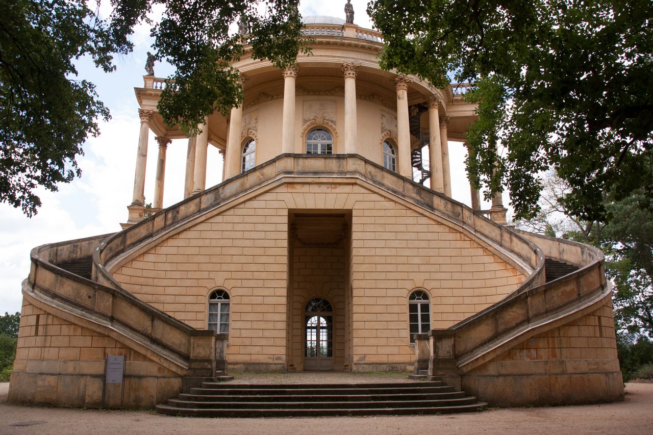Der zweigeschossige, mit zwei Altanen versehene und von einer Kuppel bekrönte Rundbau hatte nach dem Willen Friedrichs des Großen sein Vorbild in einem Rekonstruktionsversuch des Kaiserpalastes Kaiser Neros in Rom.