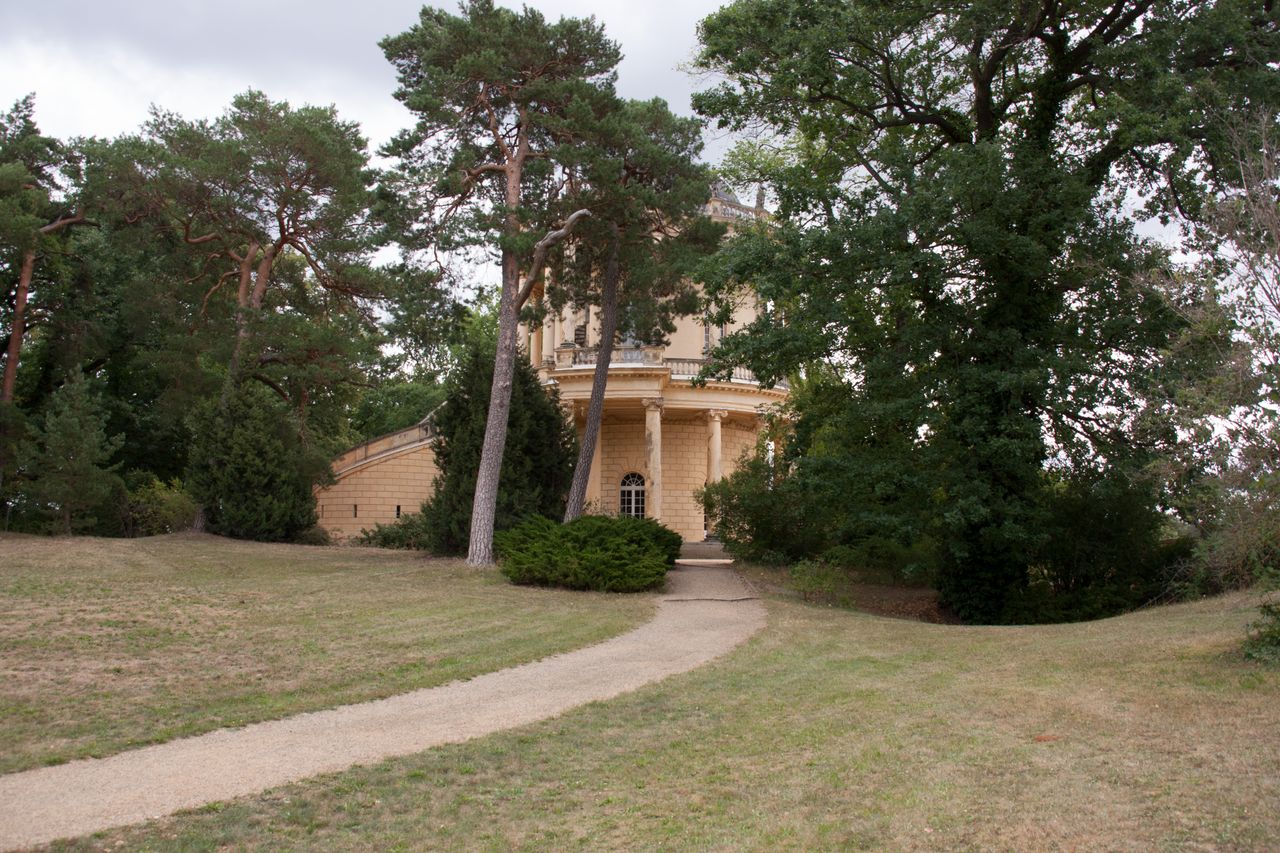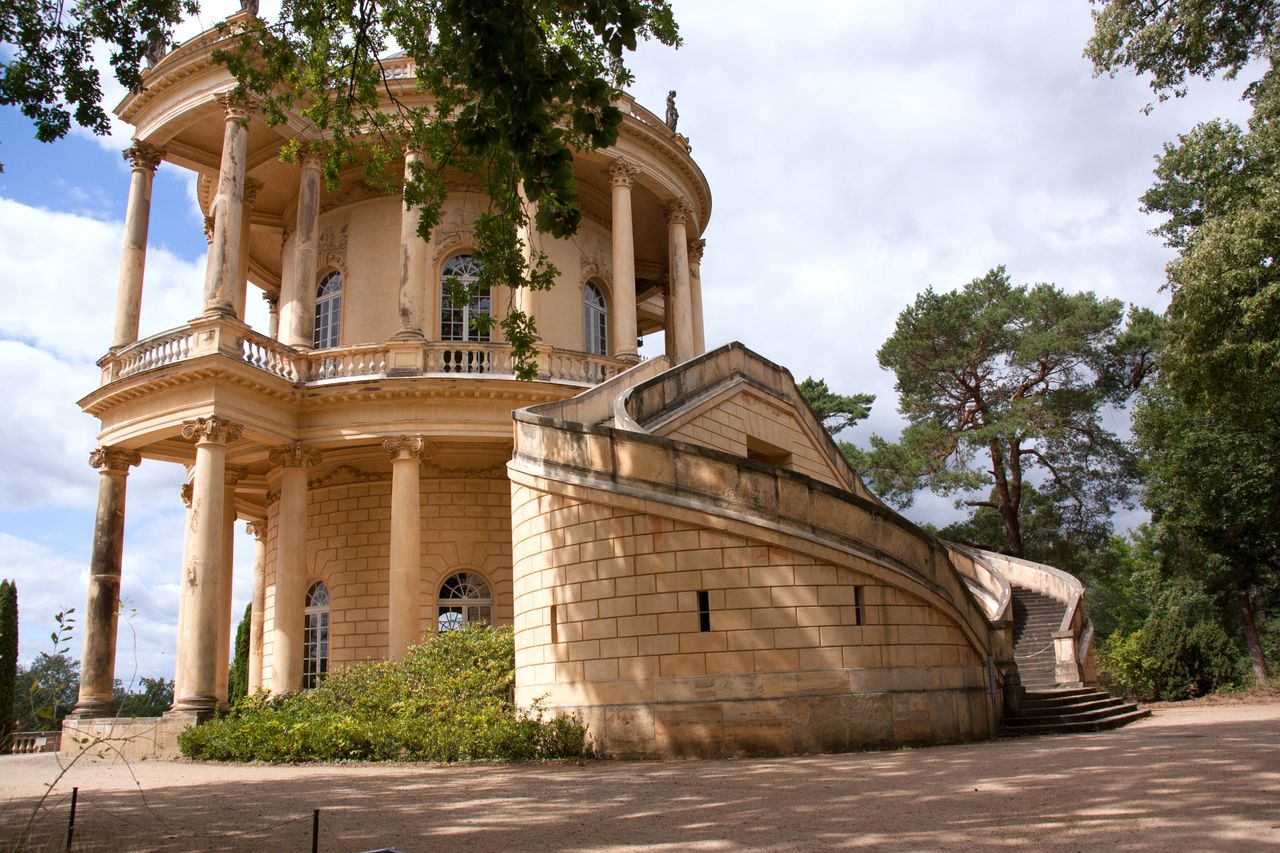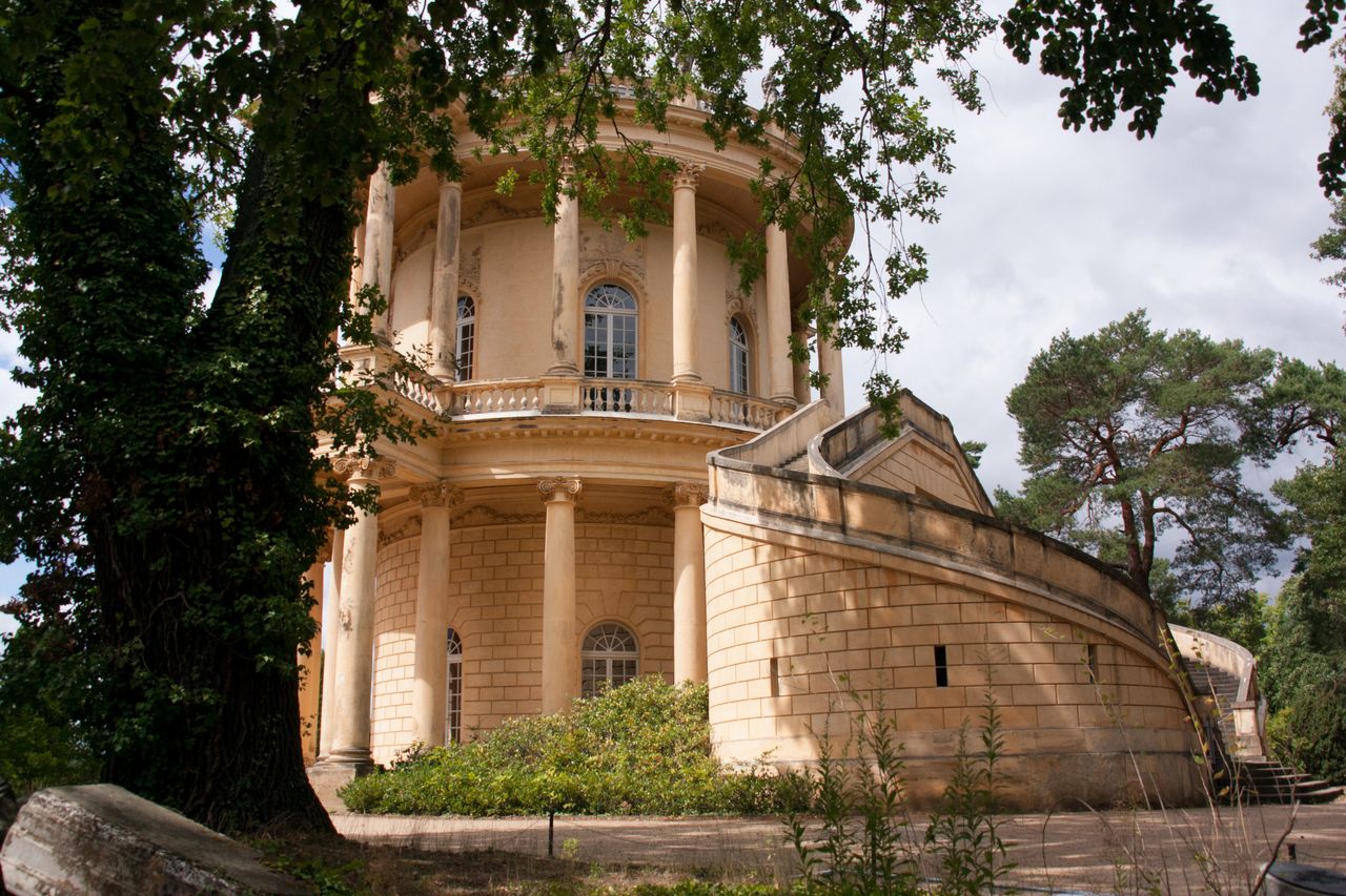 Der zweigeschossige, mit zwei Altanen versehene und von einer Kuppel bekrönte Rundbau hatte nach dem Willen Friedrichs des Großen sein Vorbild in einem Rekonstruktionsversuch des Kaiserpalastes Kaiser Neros in Rom.