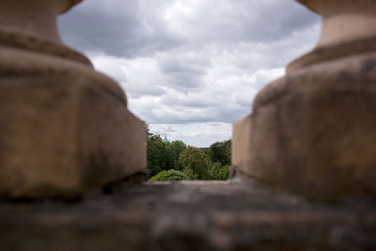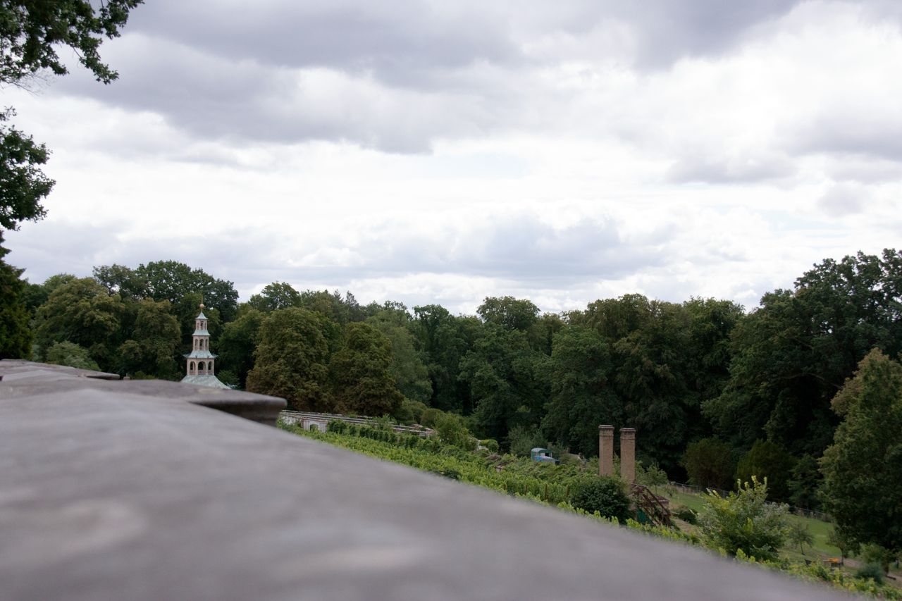 Vom Klausberg aus erschließen sich reizvolle Ausblicke über den Park Sanssouci hinweg auf die hügelige, seenreiche Landschaft und die Stadt Potsdam.