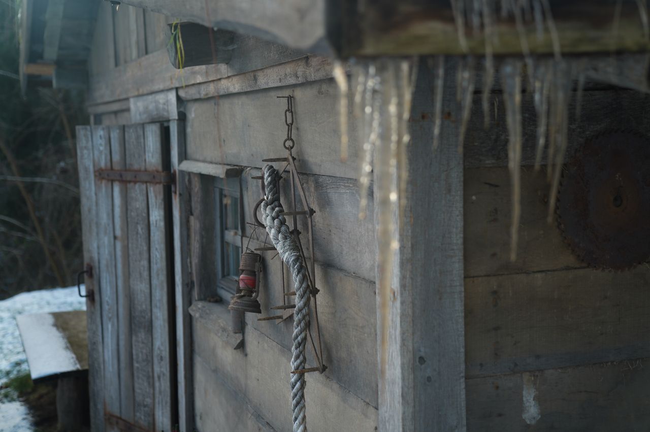 Altes Holzhaus, im Stil einer kleinen Berghütte.
