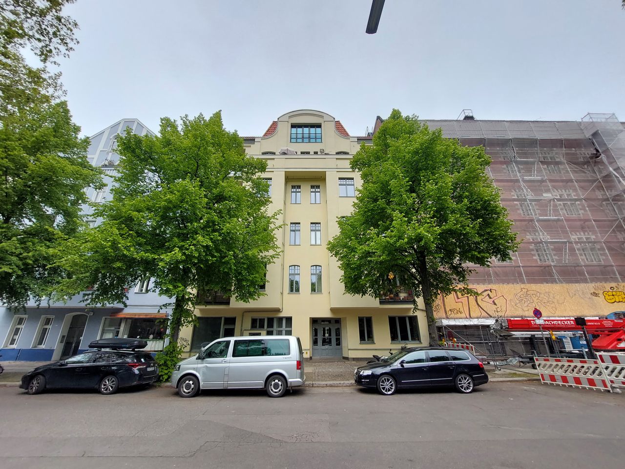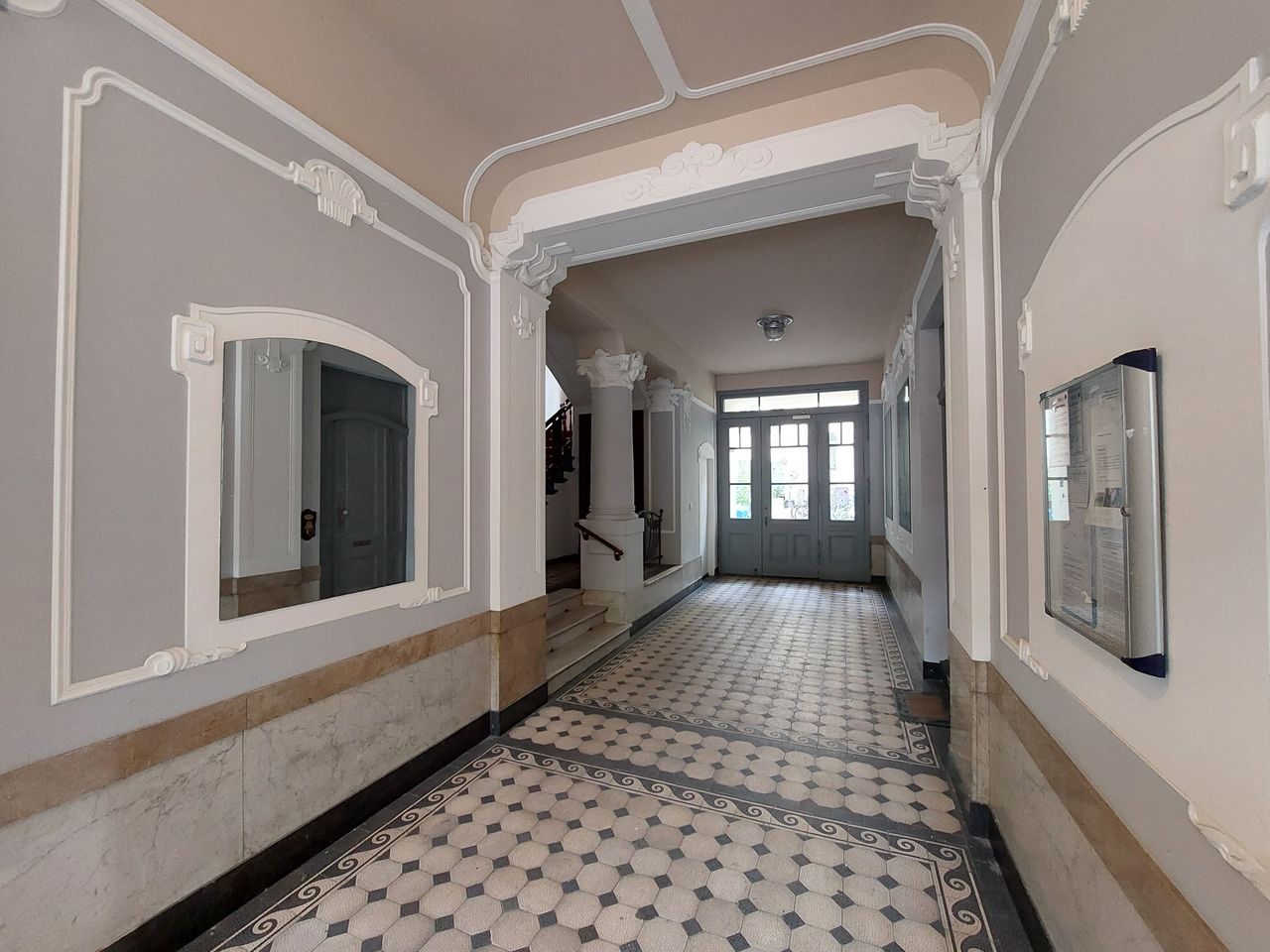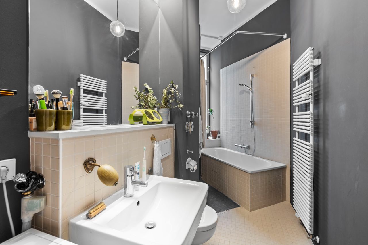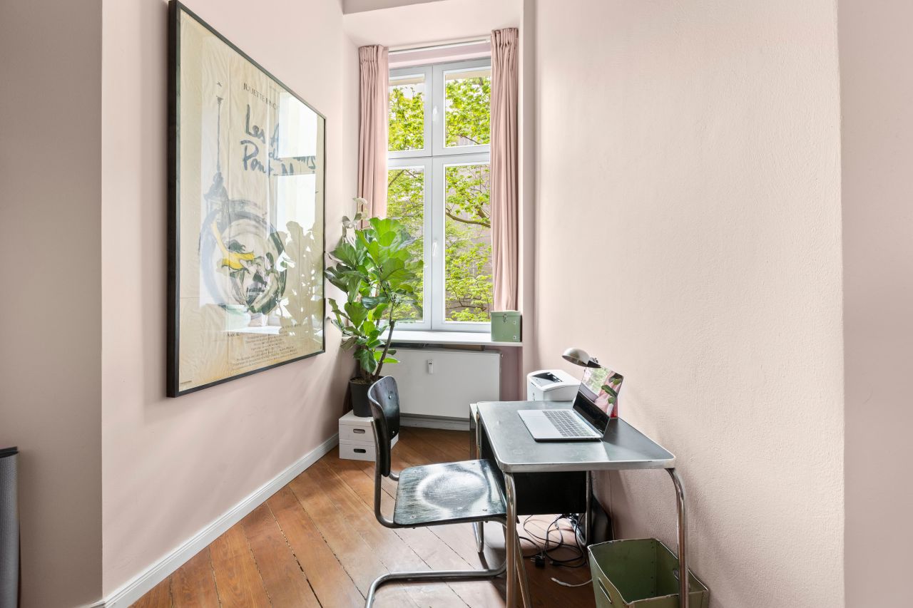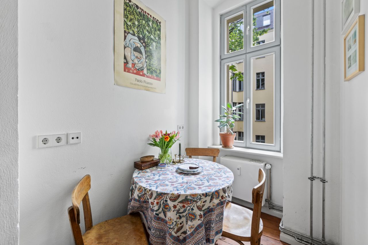 Schöne freundliche Berliner Altbauwohnung mit dekorativen Türelementen, Flügeltür, üppigem Balkon und Dielenboden.