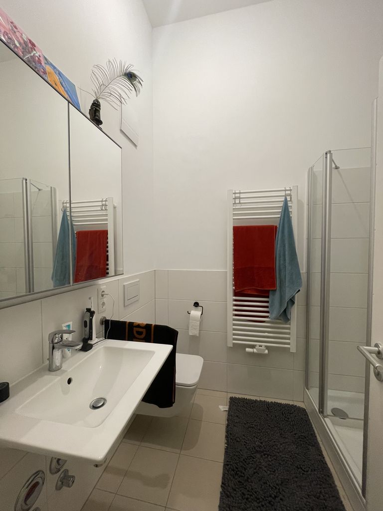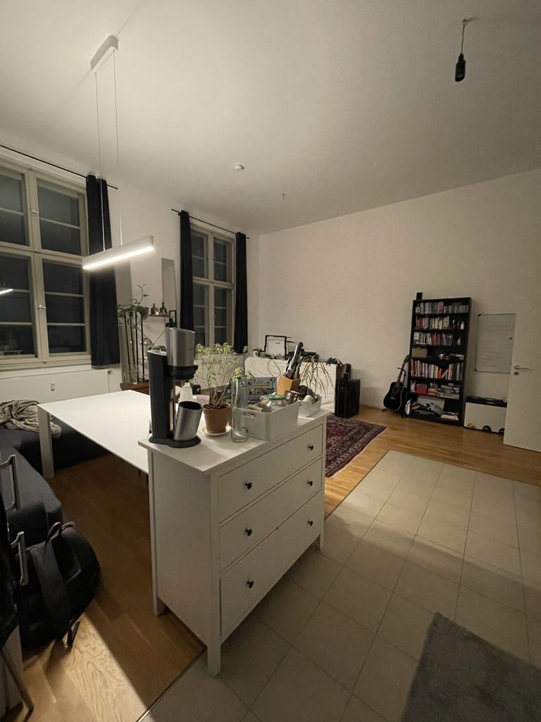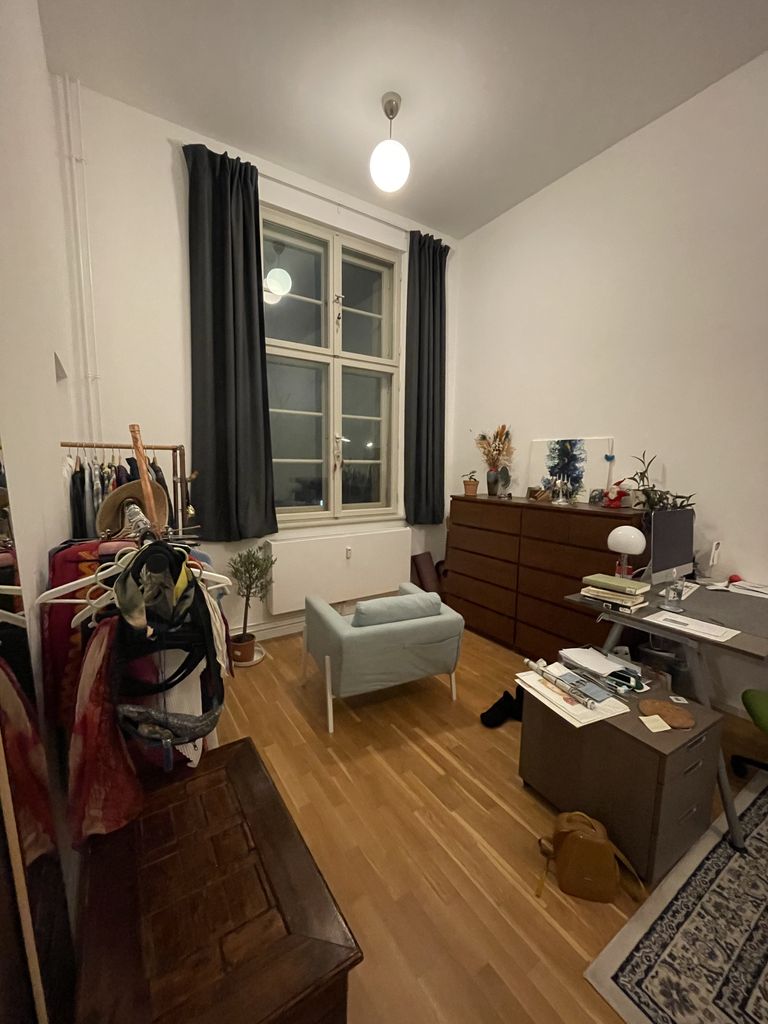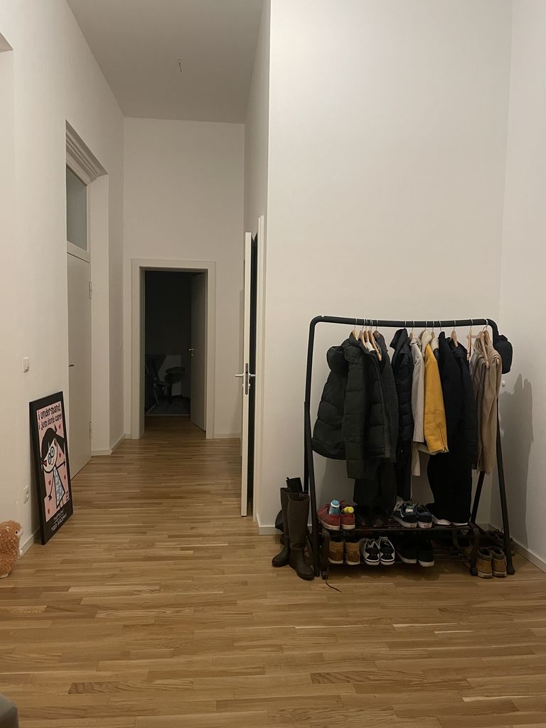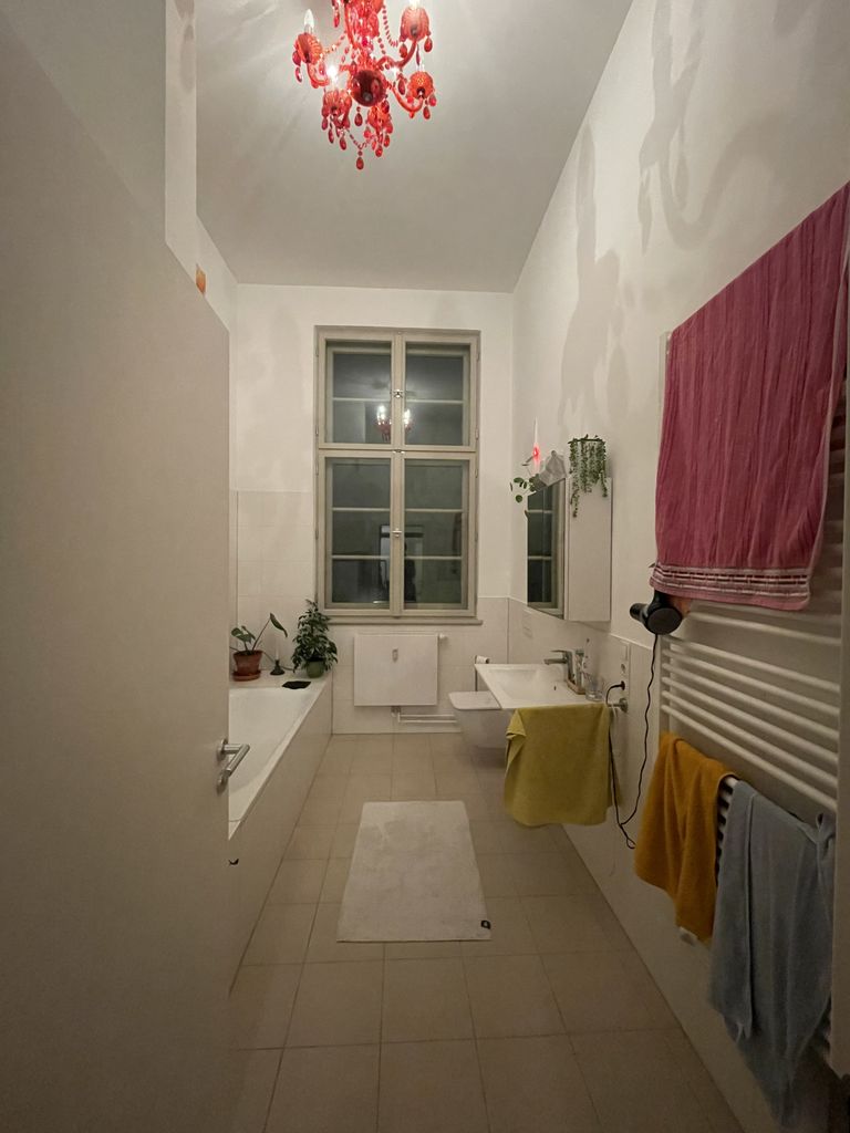 Our flat is very spacial with almost 4 meter high ceilings. The building is over 100years old. Two years ago it got a complete redevelopment. The condition of the building is extraordinary, especially for such an old building. They used the best materials and equipment for the apartment interior. There is a lot of light coming into the rooms.