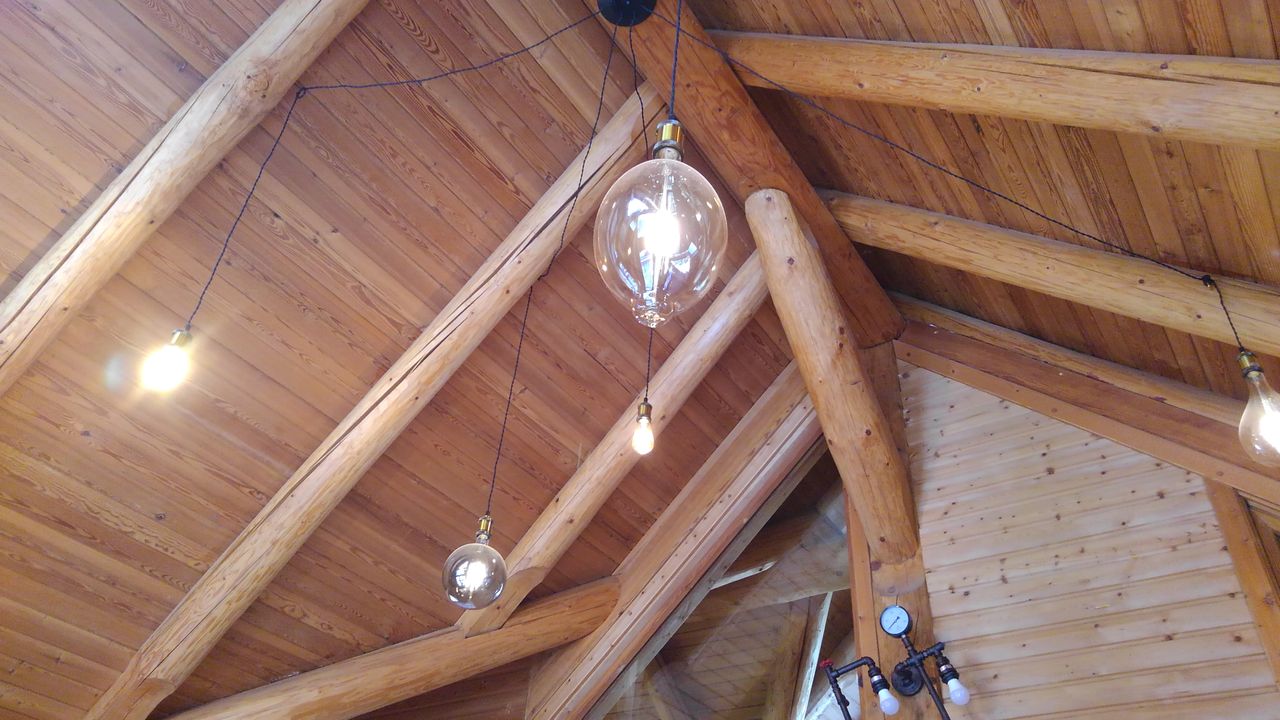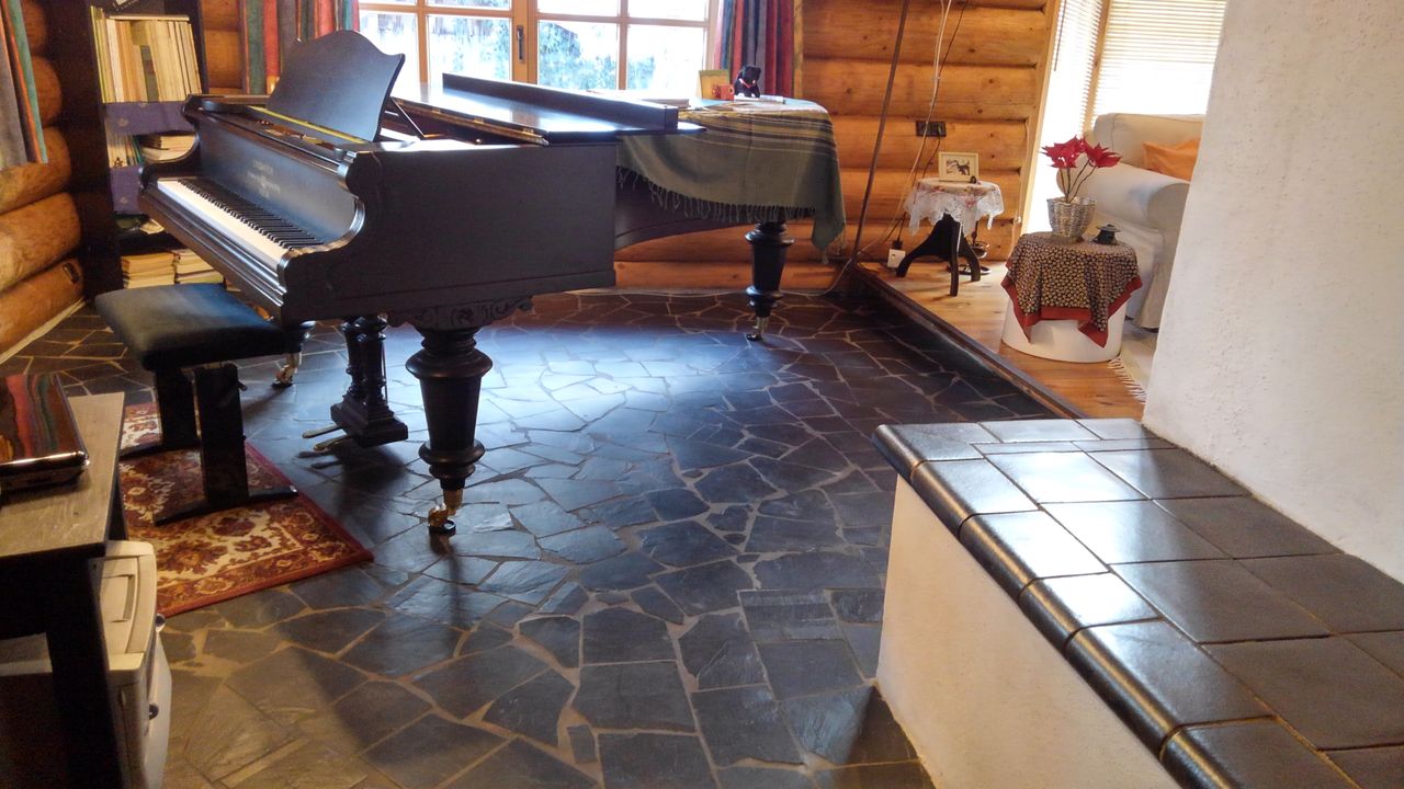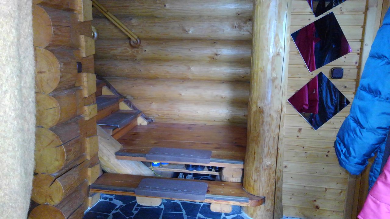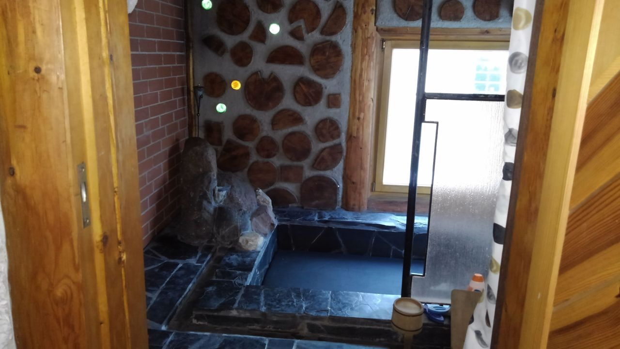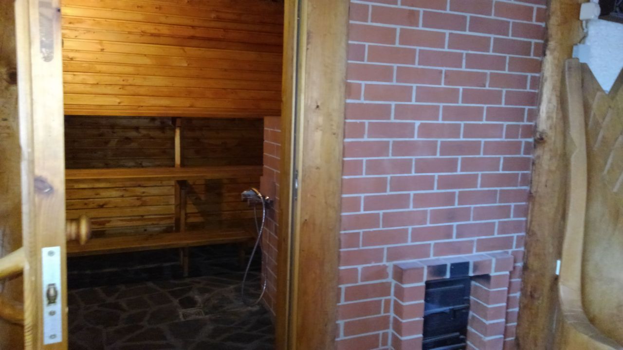 Erstens das sich um eine Ofenlandschaft mit offenem Kamin und warmer Ofenbank, mit Loft über zwei Stockwerke erstreckende Haupthaus im Blockhausbau.
