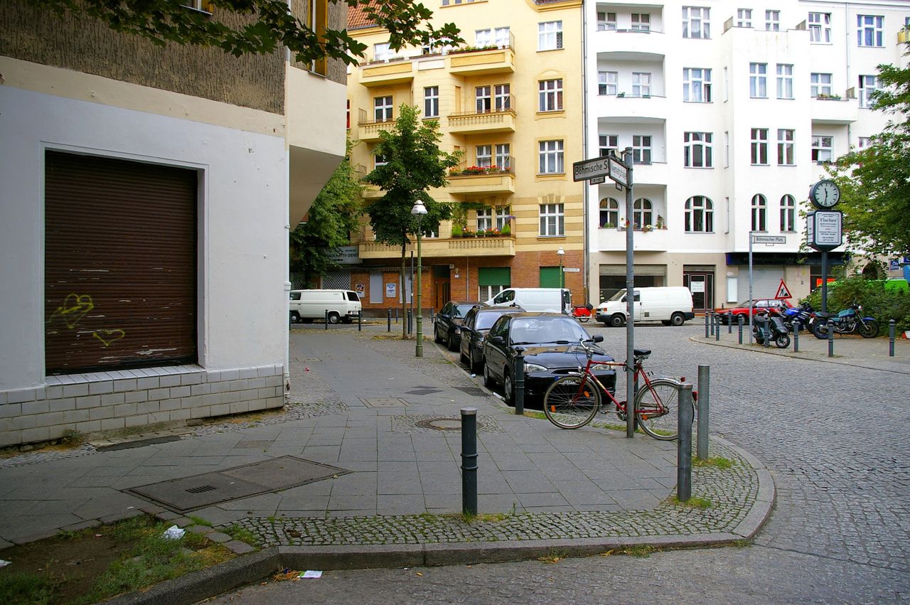 Kleiner Platz im ruhigen Teil von Neukölln, Wohnhäuser aus der Gründerzeit, teils renoviert
