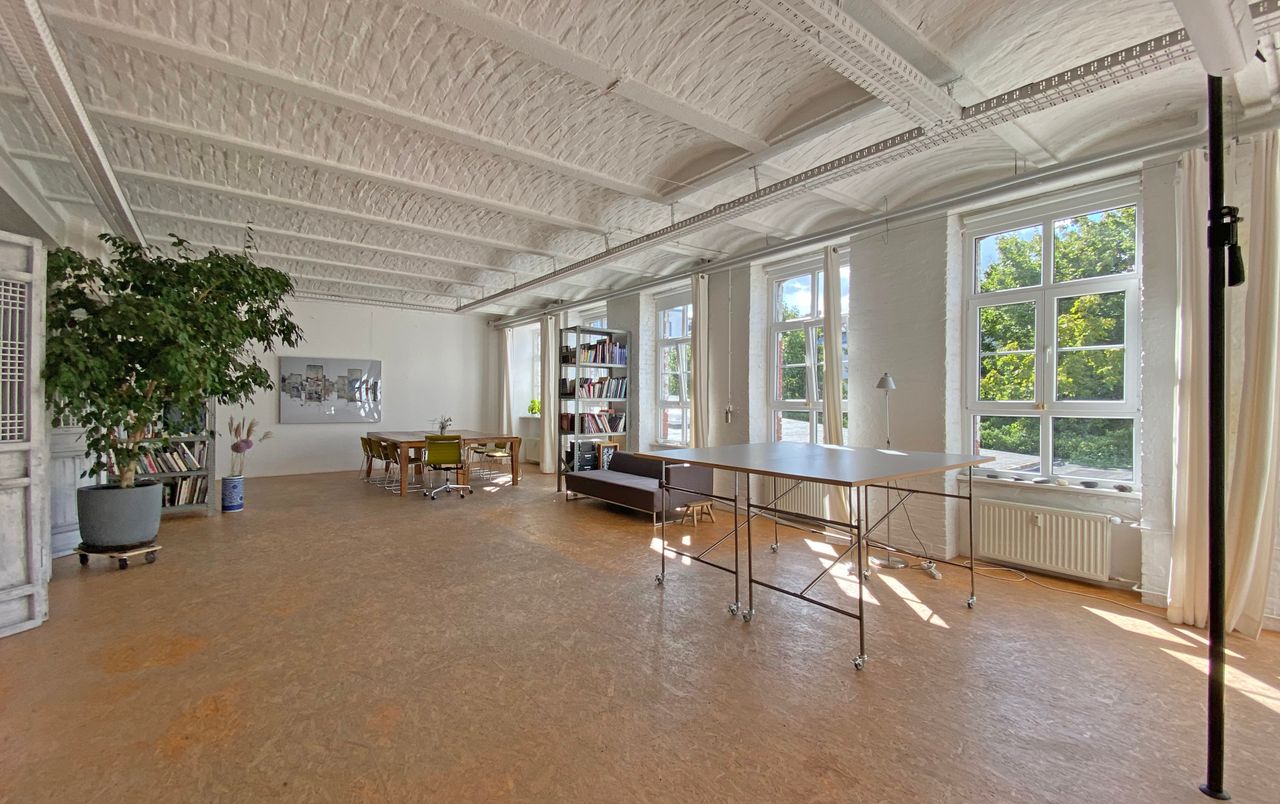 2 Etagen einer ehemaligen Möbelfabrik von 1895, grosser Werk Hof, genutzt für Veranstaltungen, Seminare, Fotoshootings (Fotoequipment, Hintergründe vorhanden), Klavier, Küche.