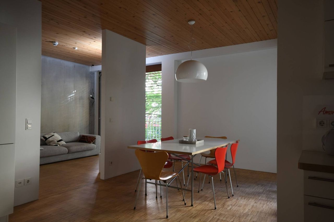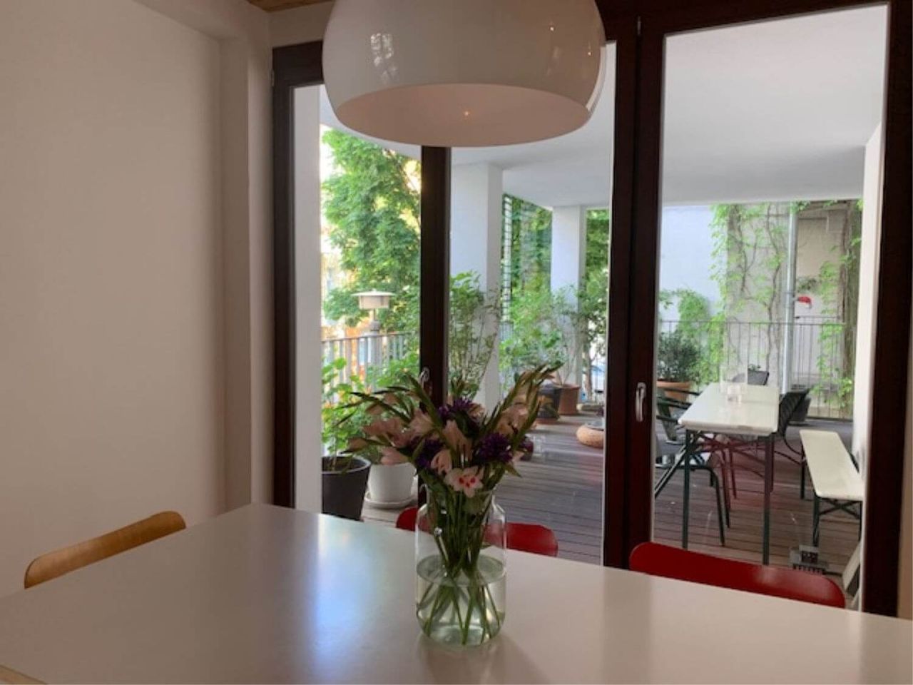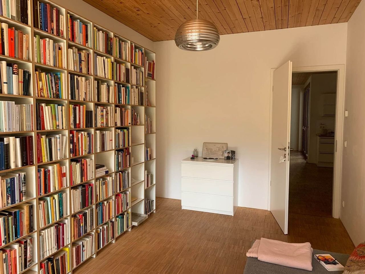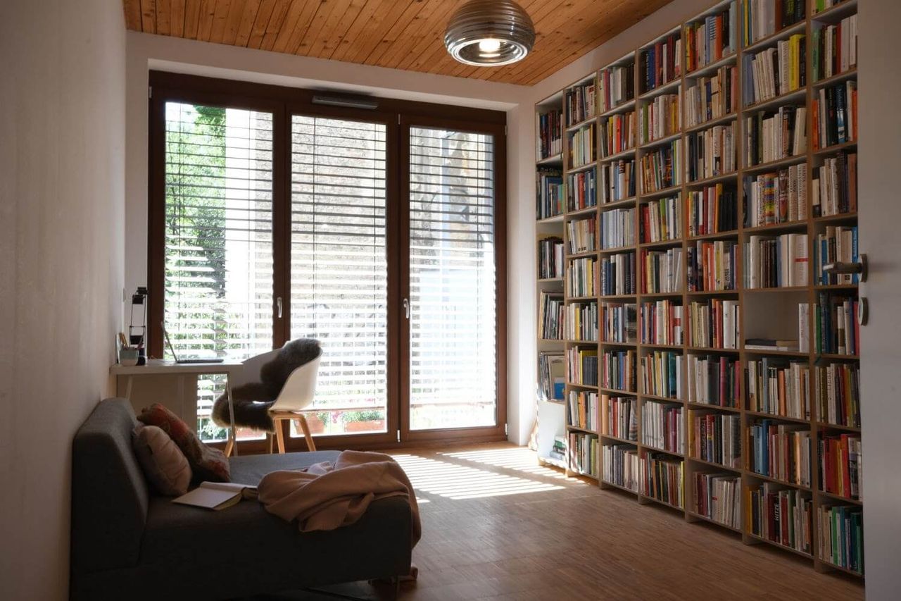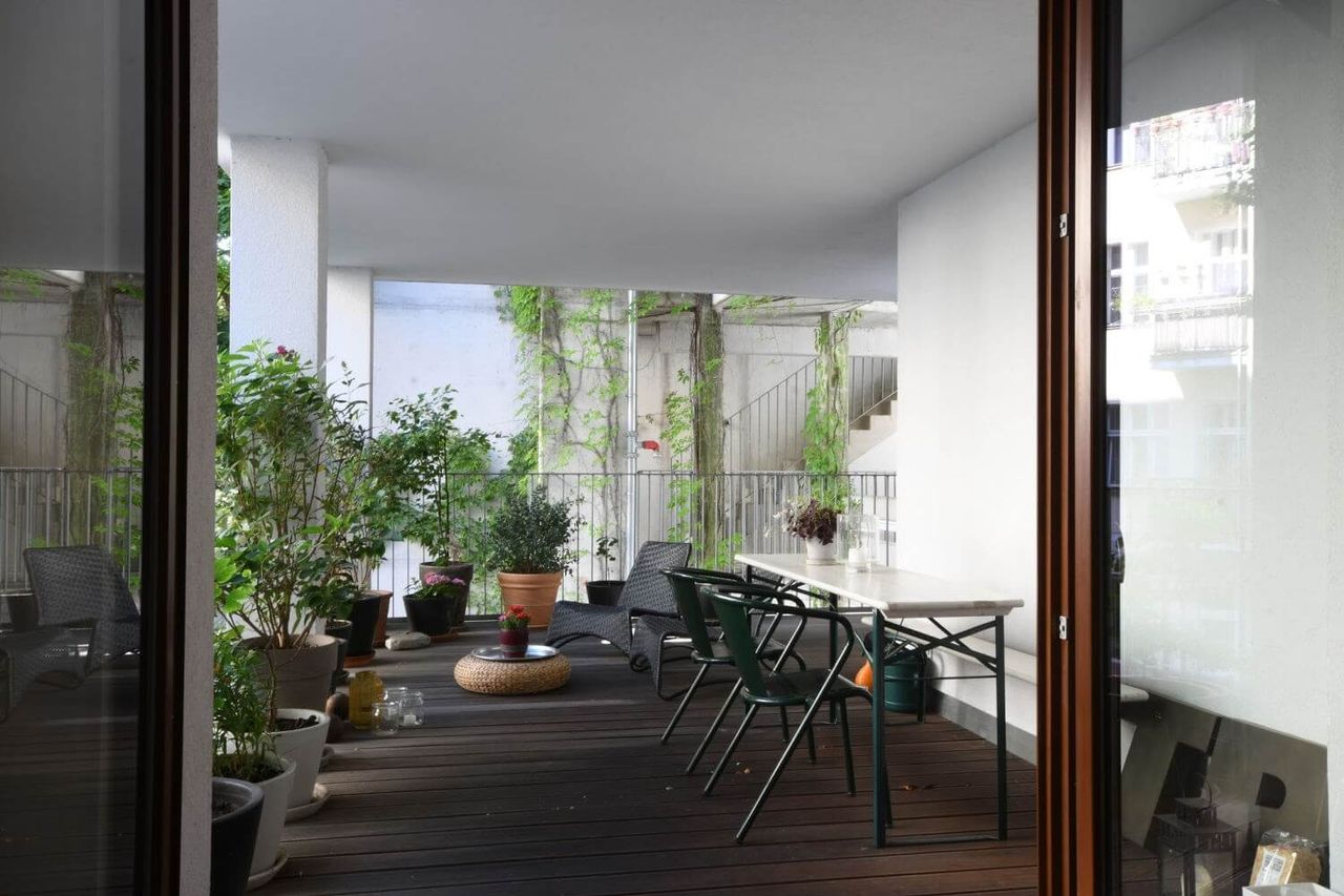 Despite being nestled in the Prenzlauer Berg Kiez, the unique wooden ceilings and large terrace full of greenery give this Home Studio a cabin-y vibe. These elements, coupled with warm minimal decor and a stacked bookcase truly make it feel like an elegant inner city retreat! In need of a woodsy aesthetic in the city? This is your space!