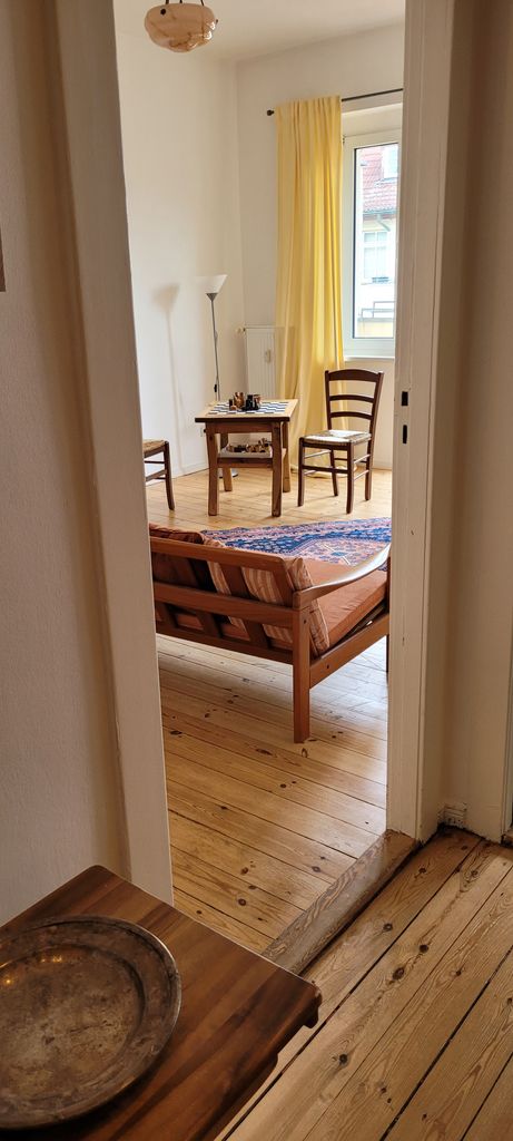Helle, gut durchlüftete 1,5- Zimmerwohnung in O-W-Lage mit Balkon direkt an der U 6 ( Bergmannkiez, Stadtmitte, Friedrichstraße.). Einrichtung minimalistisch, z.T. mit Vintage-Möbeln. Waschmaschine vorhanden, Platz für kleinen Geschirrspüler vorhanden. Einkaufsmöglichkeiten. und Grünflächen fußläufig. Nette Nachbarschaft.
