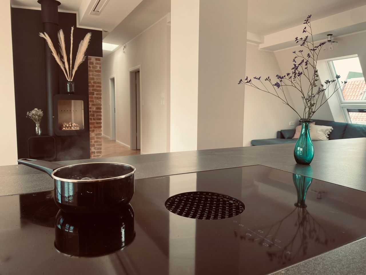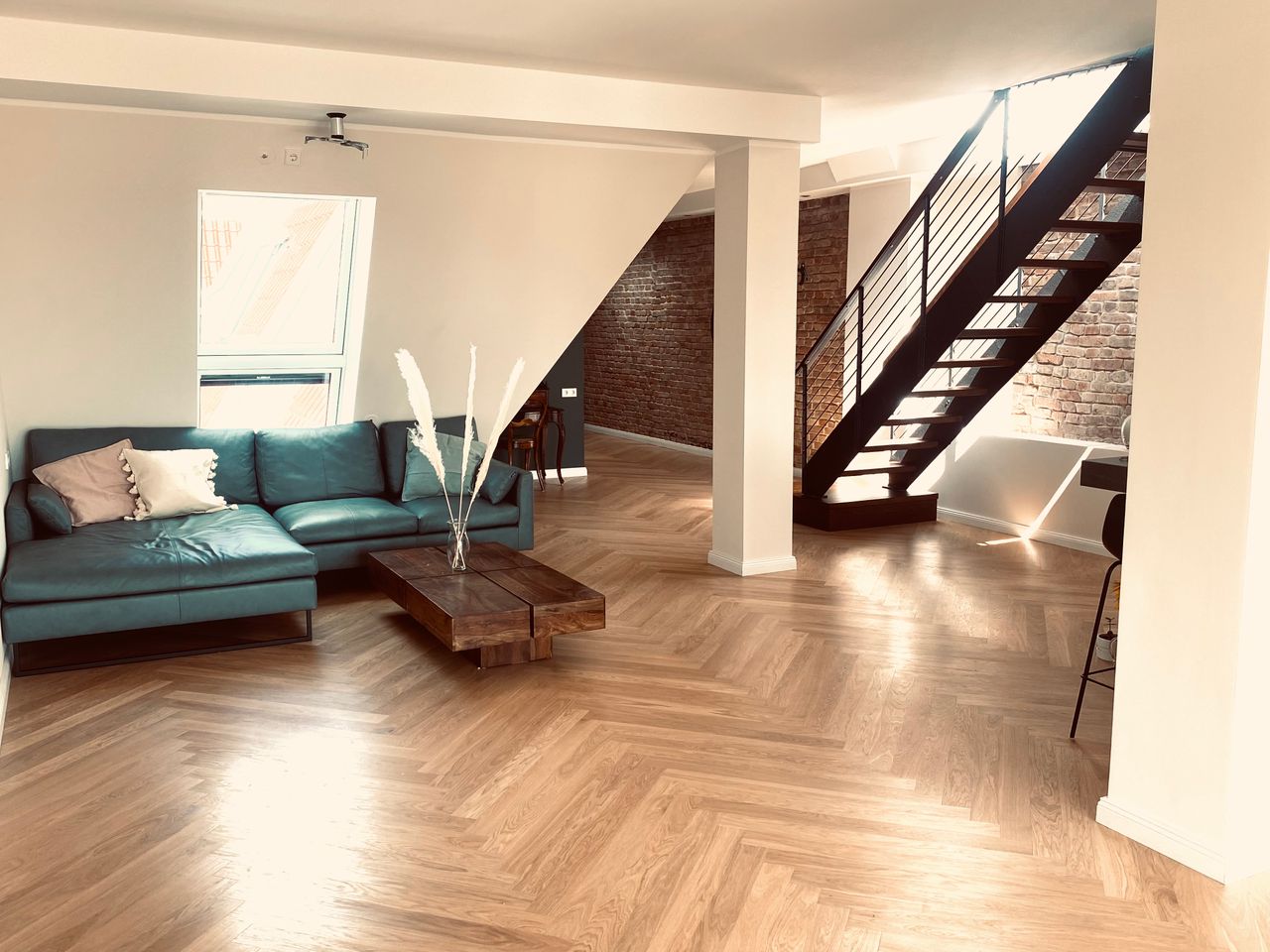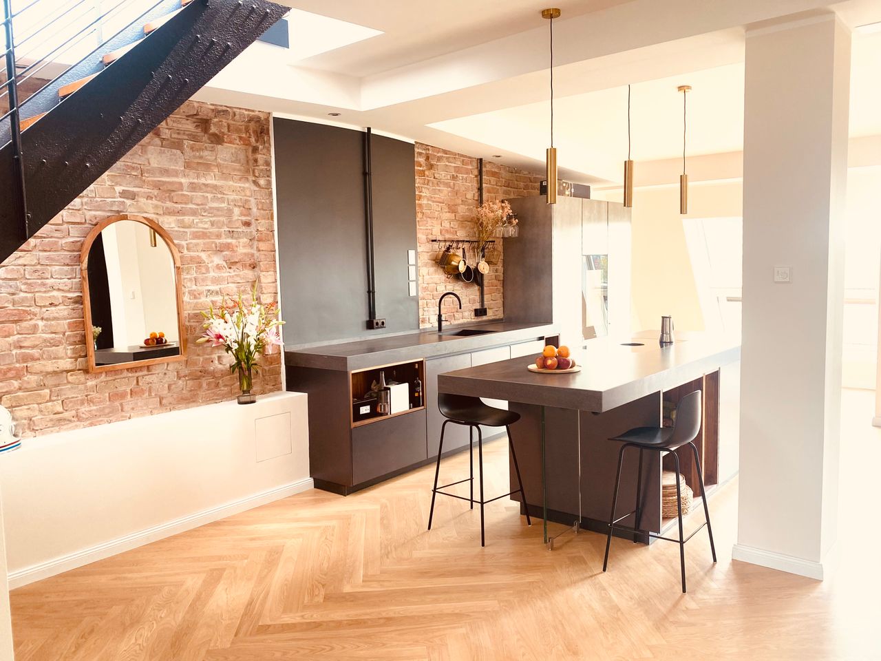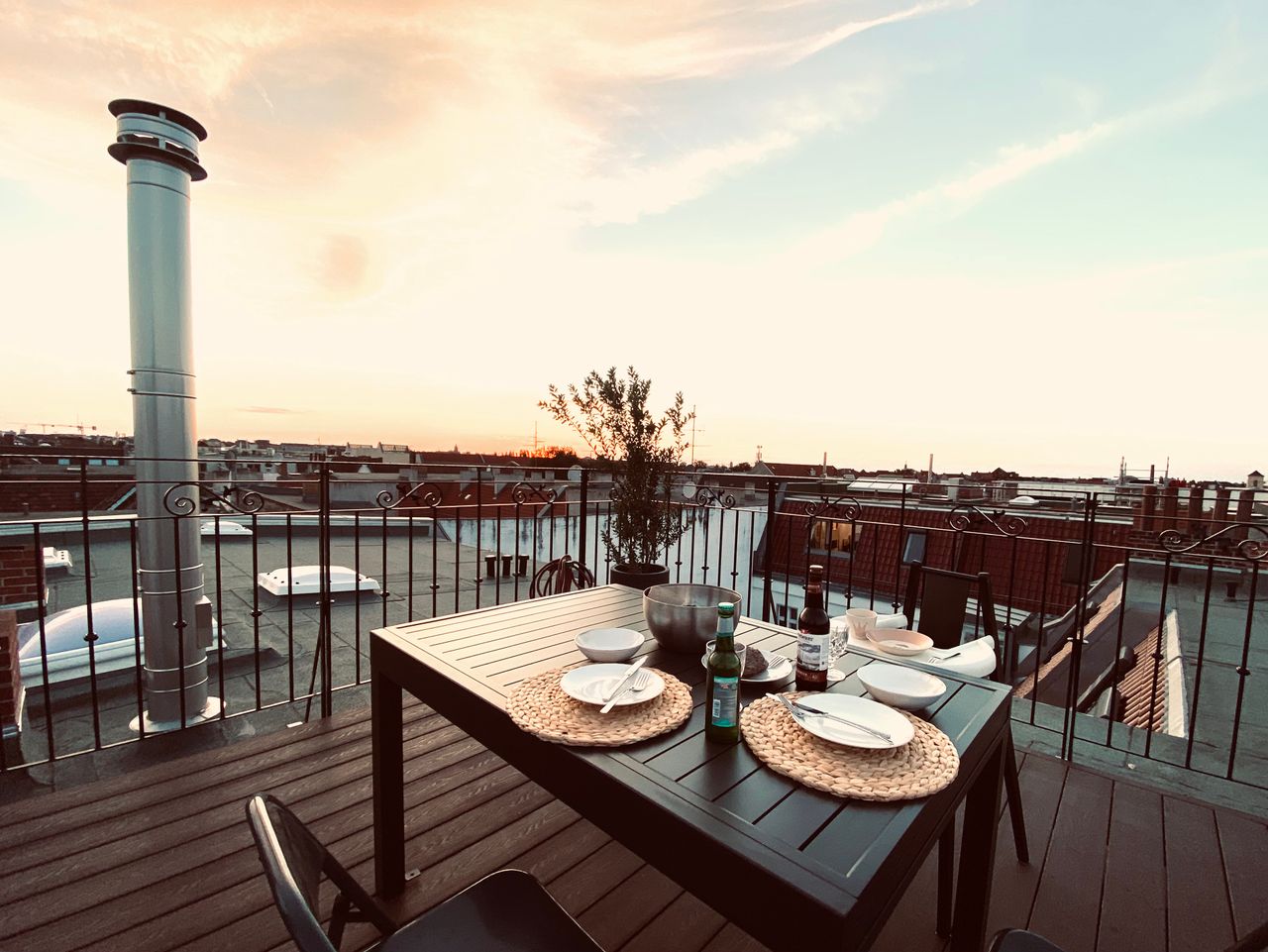 This high-end urban loft was constructed in the attic of a beautiful 19th Century clinker building. It features traditional 19th century brick walls, a 360-degree roof-top terrace and a south-facing balcony. The huge living/ eating area features a designer kitchen with an integrated wine-cooler and quooker system (filtered, cooled, sparkling and boiling tap water) and a FOCUS contemporary wood fireplace. The two bathrooms are equipped with Victoria&Albert freestanding bathtubs and Villeroy & Boche surface-mounted washbasins, the guest toilette features a Forzalaqua washbasin. Furthermore, there are two bedrooms, one with a queen-size bed and one with a sofabed & TV, each with characteristic 19th century brick walls.