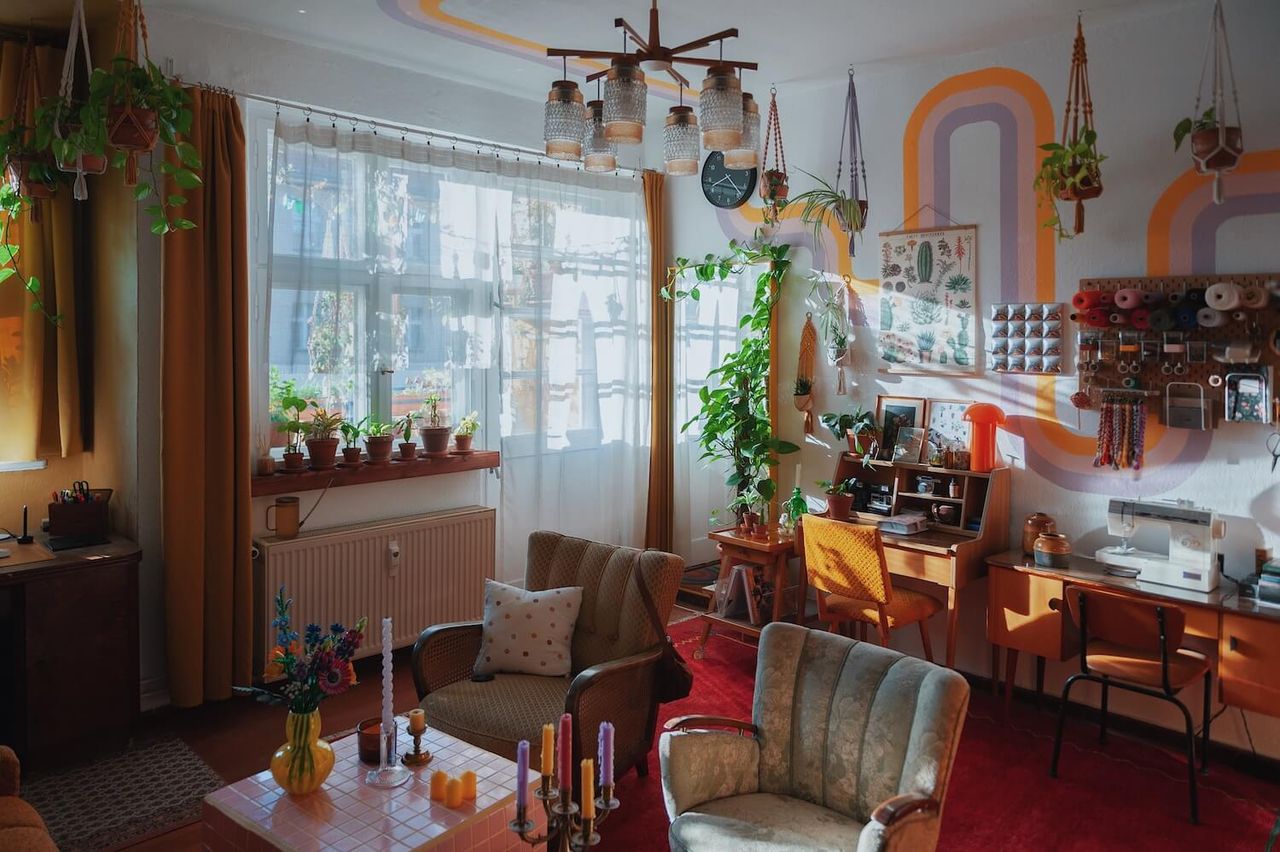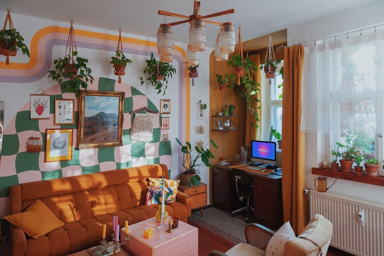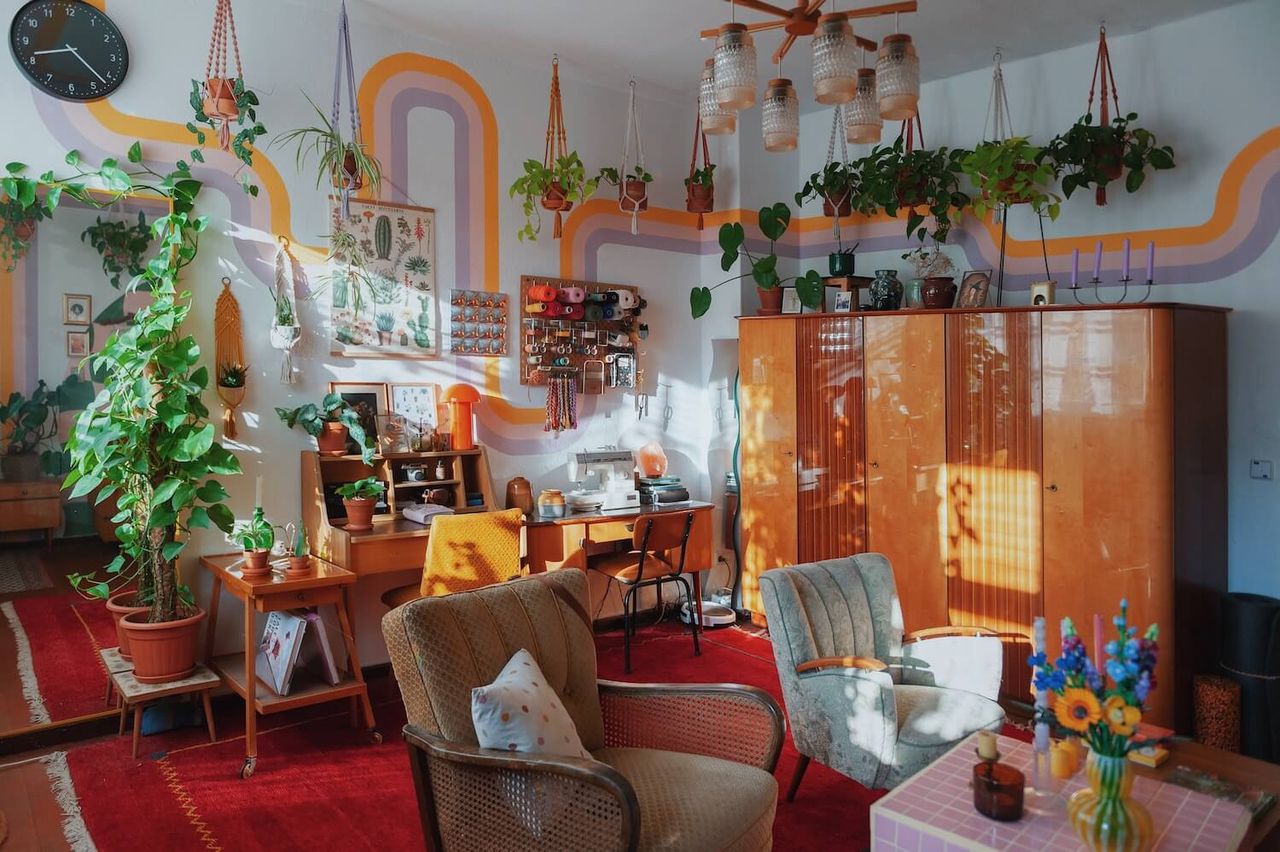 Welcome to the colourful jungle - an eclectic unique apartment filled with secondhand furniture, colourful murals and plenty of plants, props and knickknacks. If you're looking for colour and a production set that makes you say "wow", this is the one!