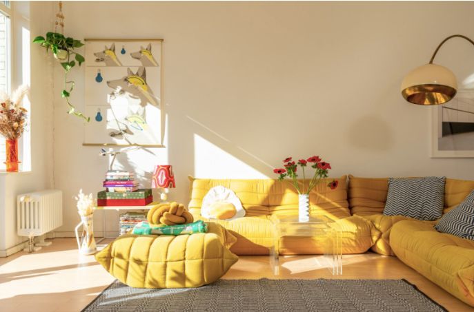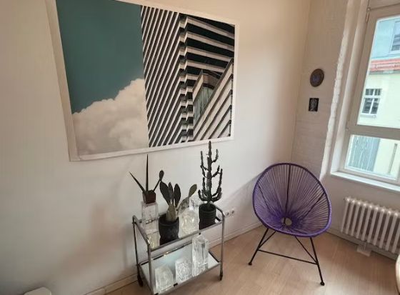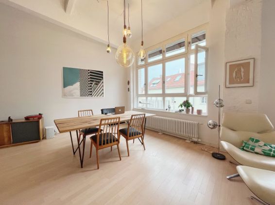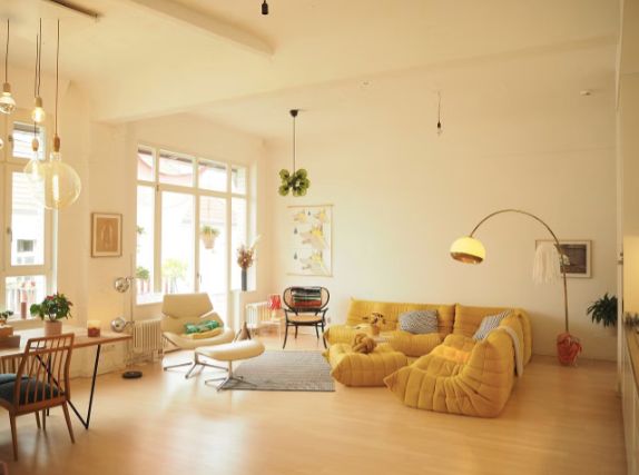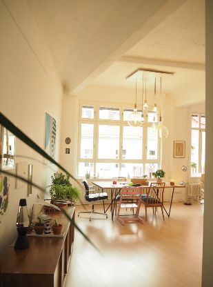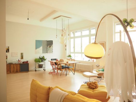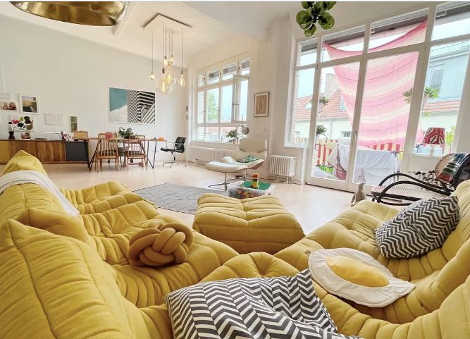 Wunderschönes helles Loft mit viel farbigen Elementen und cooler Einrichtung.
