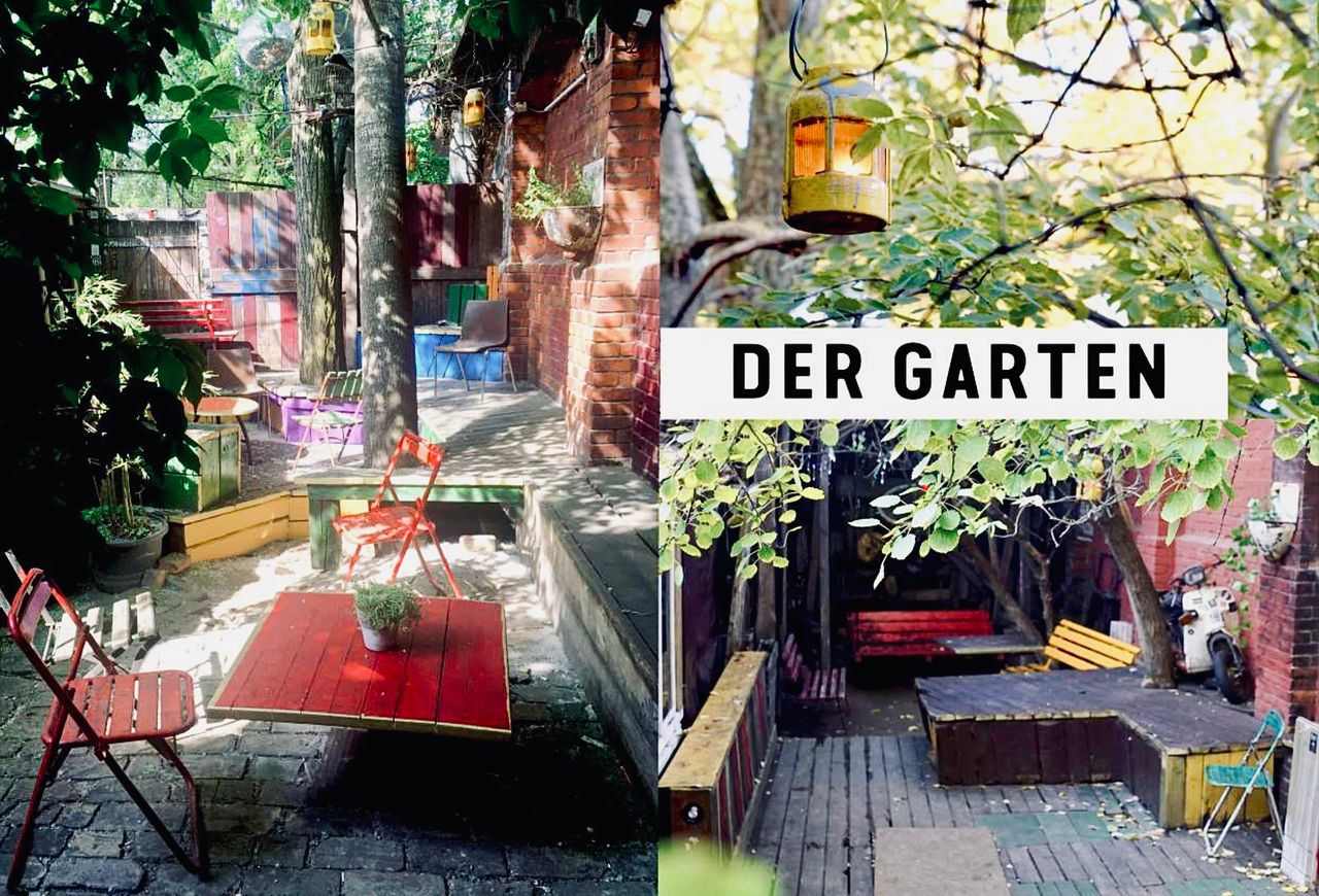 2) lange Bar mit Goldspiegelfront, original Honecker-Kronleuchter aus dem Palast der Republik, vereinzelt schlicht-moderne Podeste, Klavier, DJ-Pult, Bühnenelemente, Gartenschaukel, vielseitige Beleuchtungssituationen, ausgearbeitete Raumakustik, begrünte Galerie uvm - Abgesehen von der Bar ist die Inneneinrichtung mobil