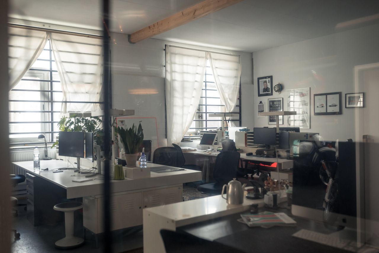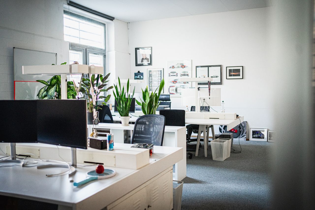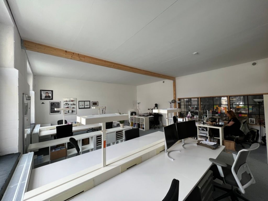 Büro: 80qm, weiße Möbel, co-Working space
