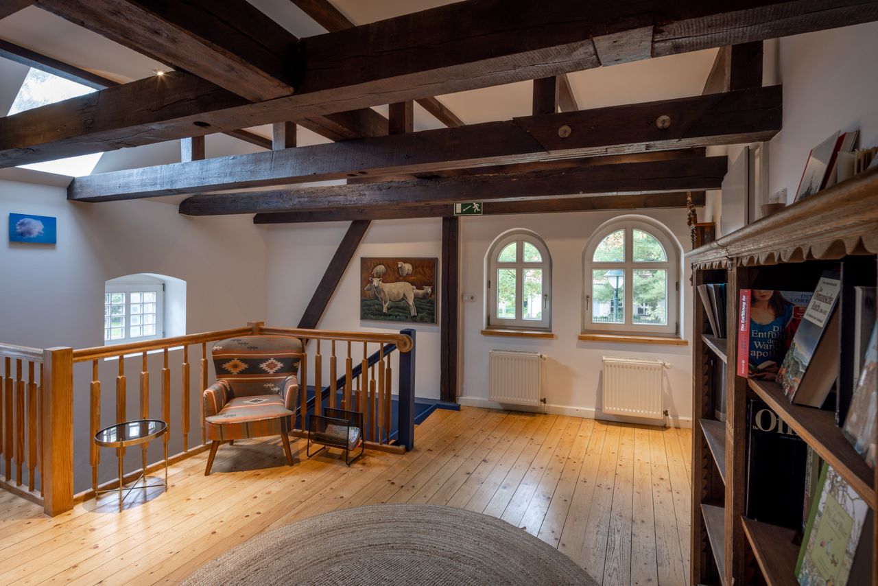 Restaurierter wunderschöner Brandenburger Vierseitenhof - 2. Hofstelle mit einem zusätzlichen 30 Jahre alten Haus, früher Landhotel, heute Seminarhof & Kreativort, komplett saniert und renoviert seit 2020 in unterschiedlichen Stilen, modern und klassisch, mit Balken und Fachwerk. Restaurant, Tagungsstätte, Seminarräumen mit freiliegenden Dachträgerbalken, Apartments/Wohnungen, Zimmern, Bädern, Wohnzimmern, 8 Küchen, Fluren, Treppen modern und alt. Großer Garten mit über 20.000 qm. Schwimmteich. Riesiger Gemüsegarten. Baumhaus mit WC und kleiner Küche, 2. Baumhaus zum Spielen, Beach-Volleyballplatz, Feuerschale, Pizzaofen, Storchennest, Tieren (Schweinen, Laufenten, Schafen, Ziegen, Katze, Hühnern, Ziegen), großflächige Wiese, Bachlauf, Alter Stall mit Sitzmöglichkeiten.
