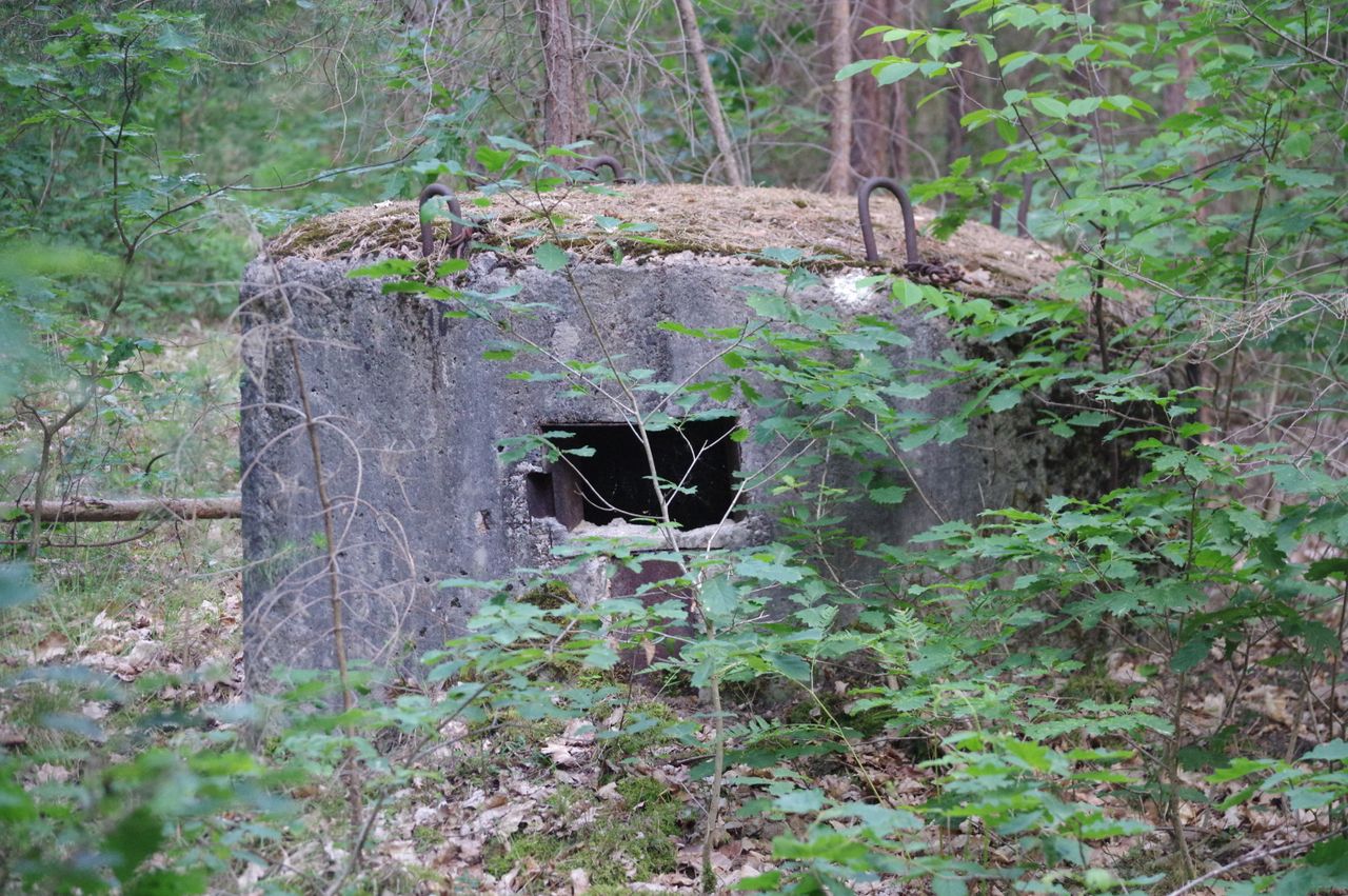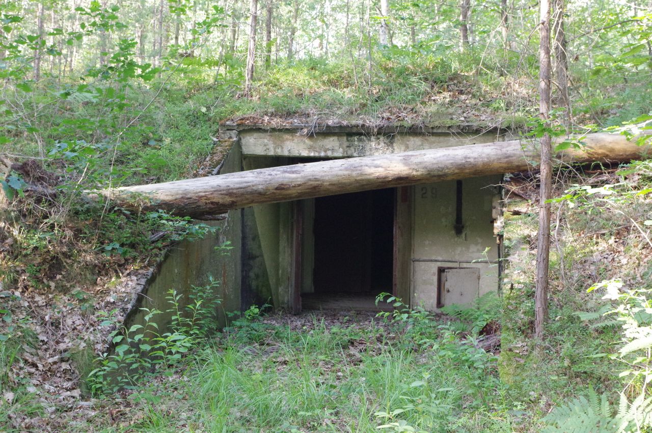 Altes Militärgelände im Wald mit zahlreichen Bunkern aus Beton und Lagerhallen aus Klinker-Mauerwerk, eingewachsen im Wald, befestigte Wege, vielfältiger Mischwald und Wiesen. Einsame Lage, sehr ruhig.