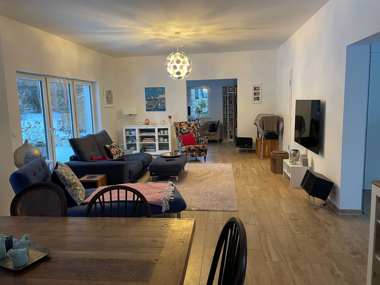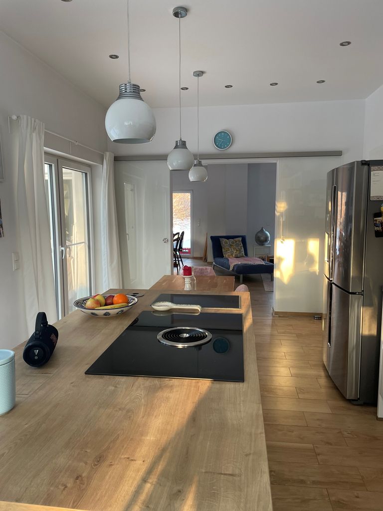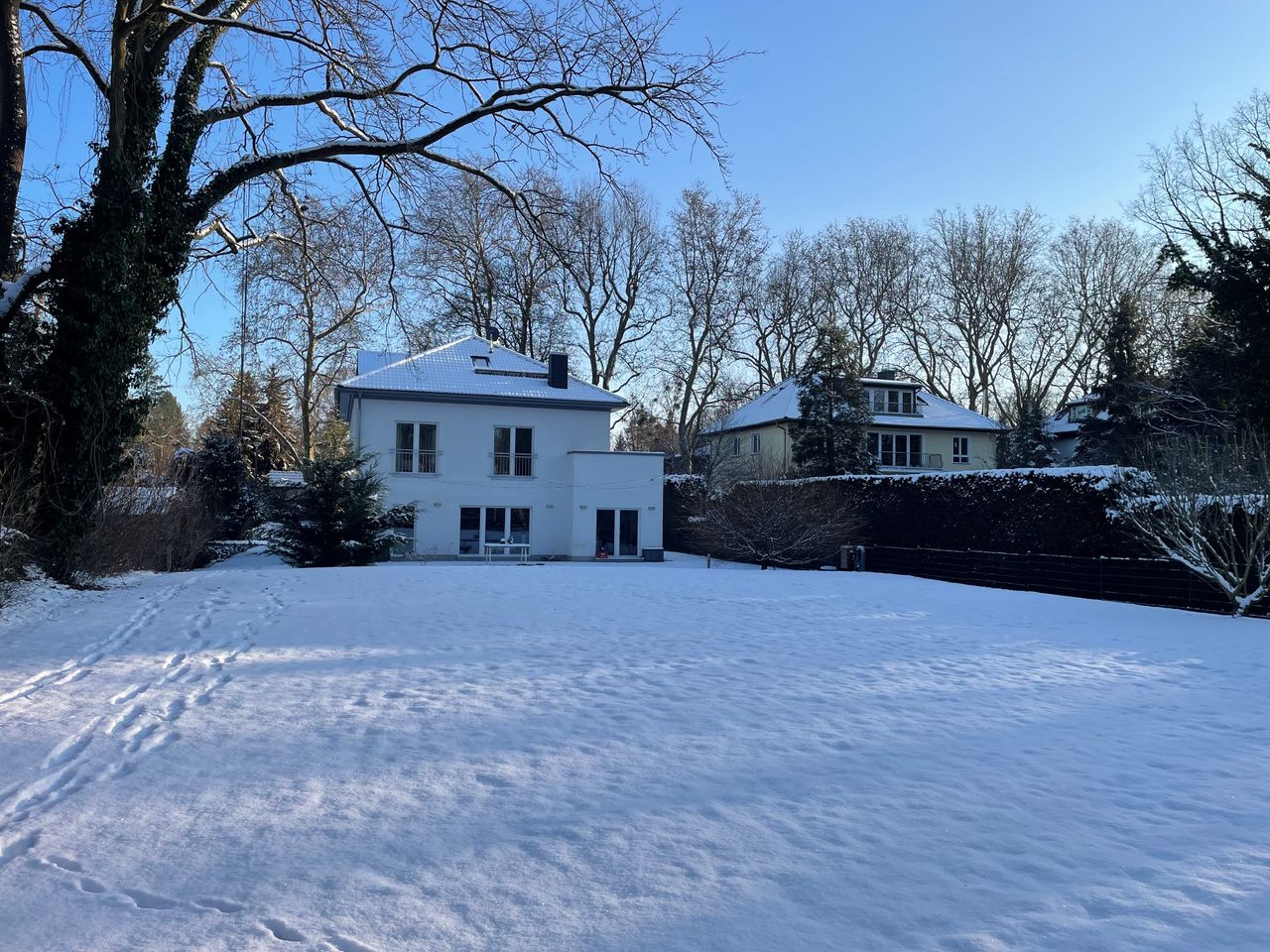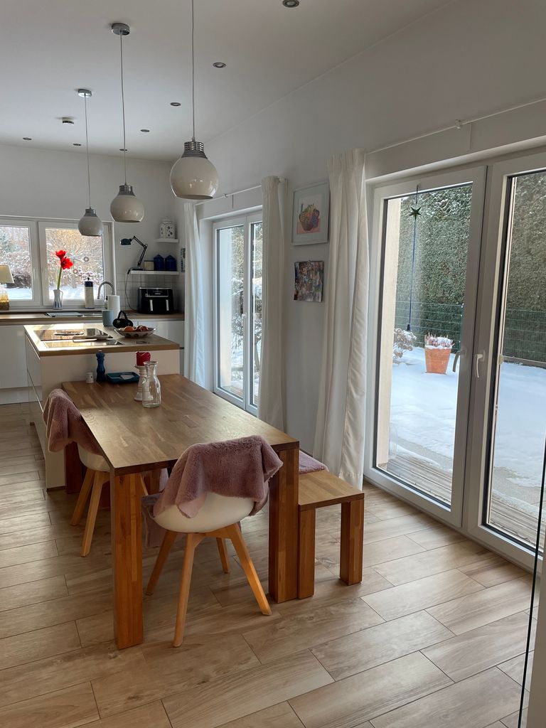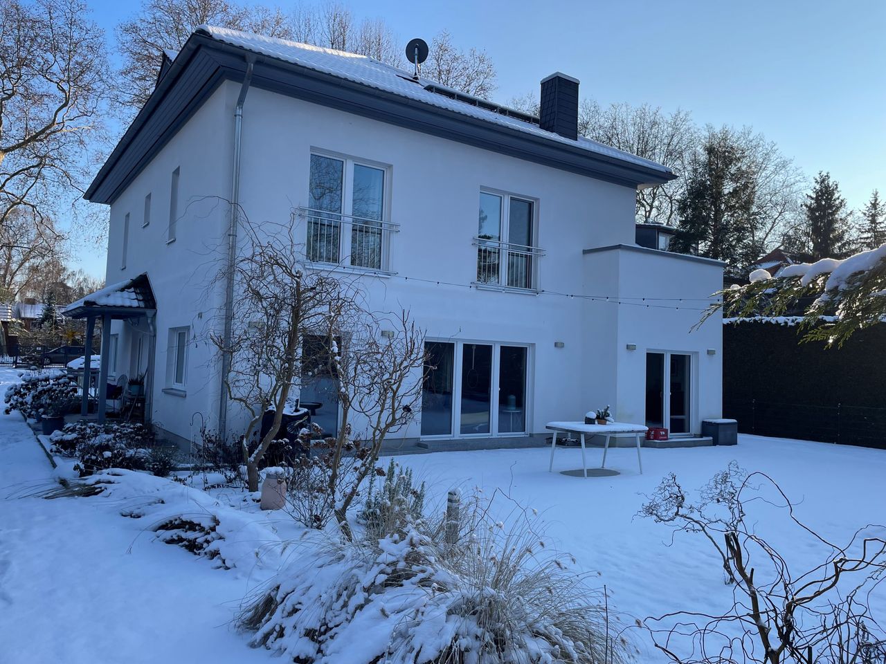 großes Einfamilienhaus im modernen Stil mit großflächigem Garten vor und hinter dem Haus, sehr hell mit großem Wohn-, Essbereich