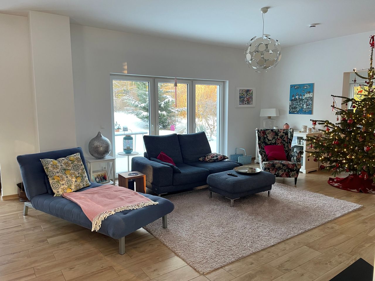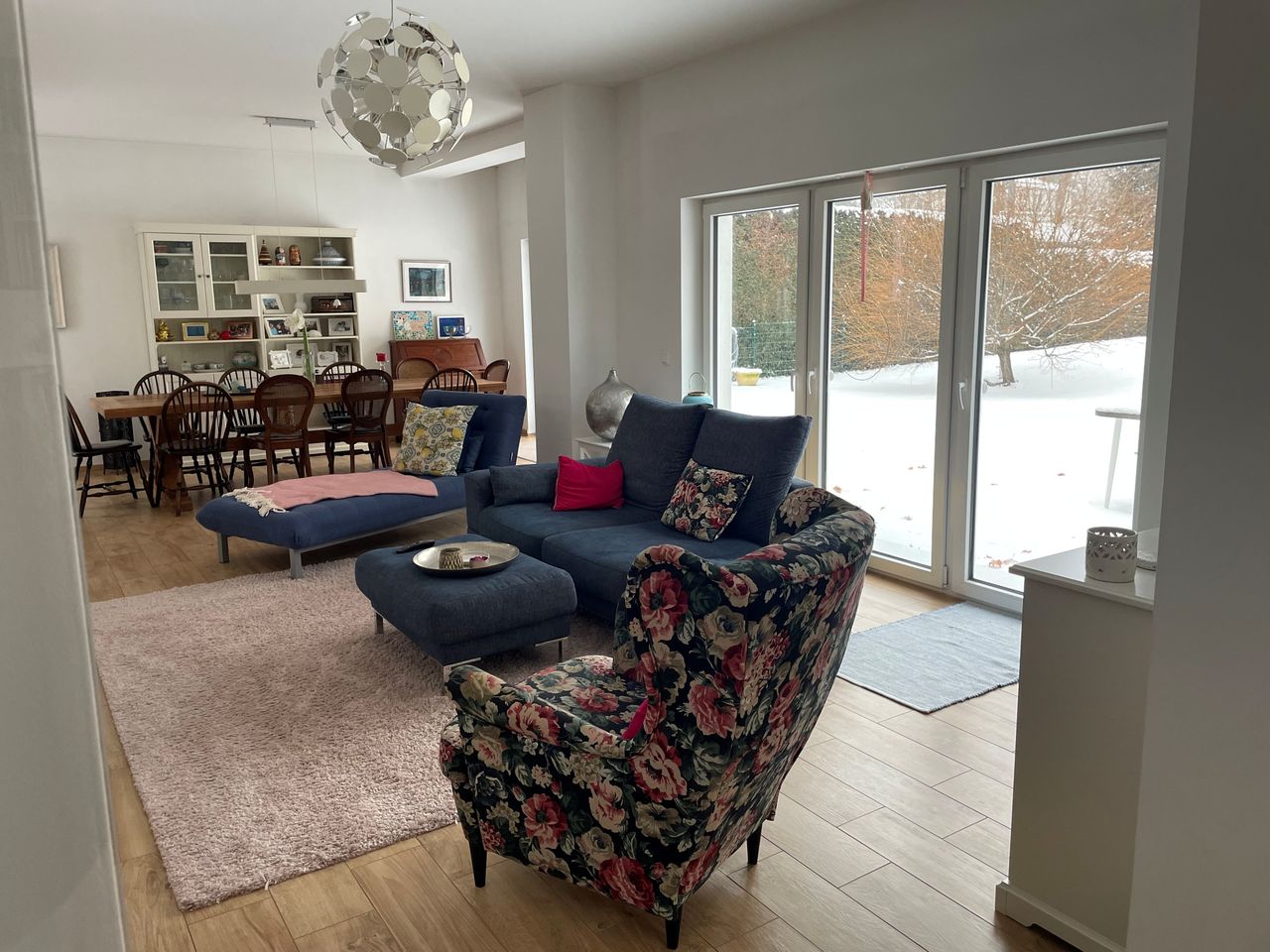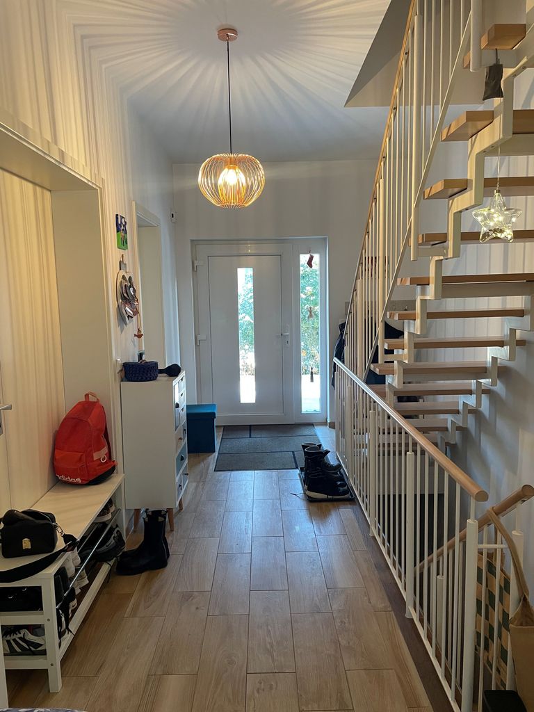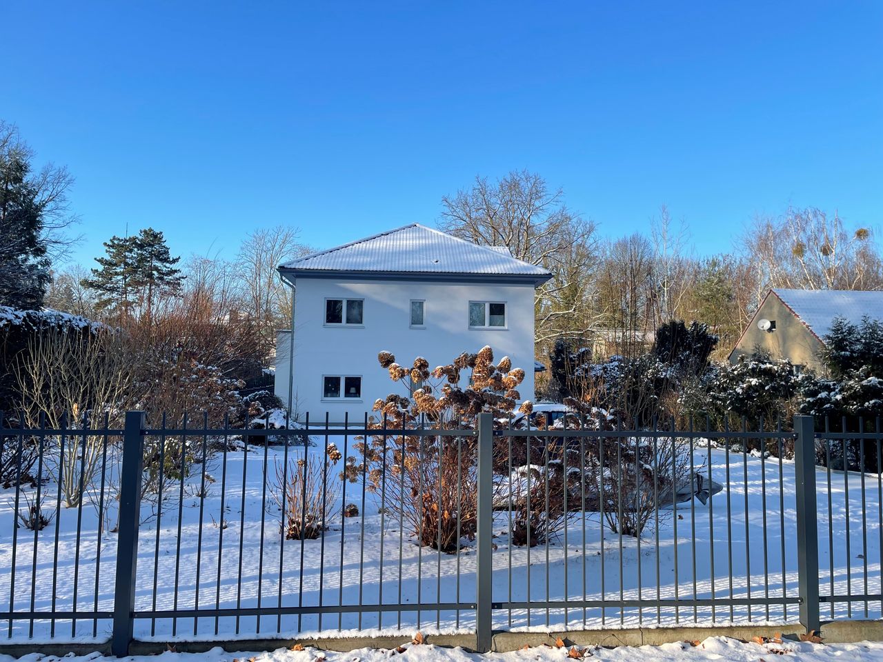 großes Einfamilienhaus im modernen Stil mit großflächigem Garten vor und hinter dem Haus, sehr hell mit großem Wohn-, Essbereich