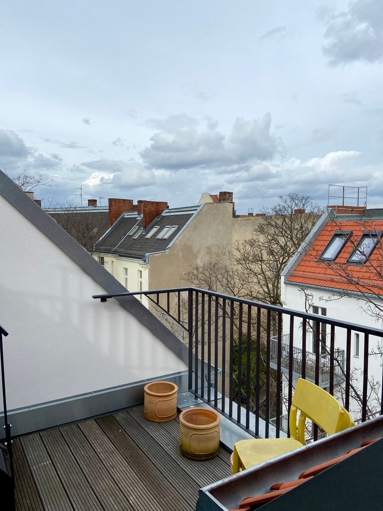 Dieses großzügige, 180 m2 große Dachgeschoss verfügt über einen 80m2 großen, lichtdurchfluteten Wohnbereich mit hochwertiger Küche und Kochinsel sowie 25m freigelegtes Mauerwerk. Vom Balkon geht es auf die große Dachterrasse, die einen unverbauten Blick über die Stadt bietet, wie es ihn nur selten gibt in der Hautstadt: vom Rathaus Schöneberg zum Alex, von Potsdamer Platz und Reichstag zur Gedächtniskirche.