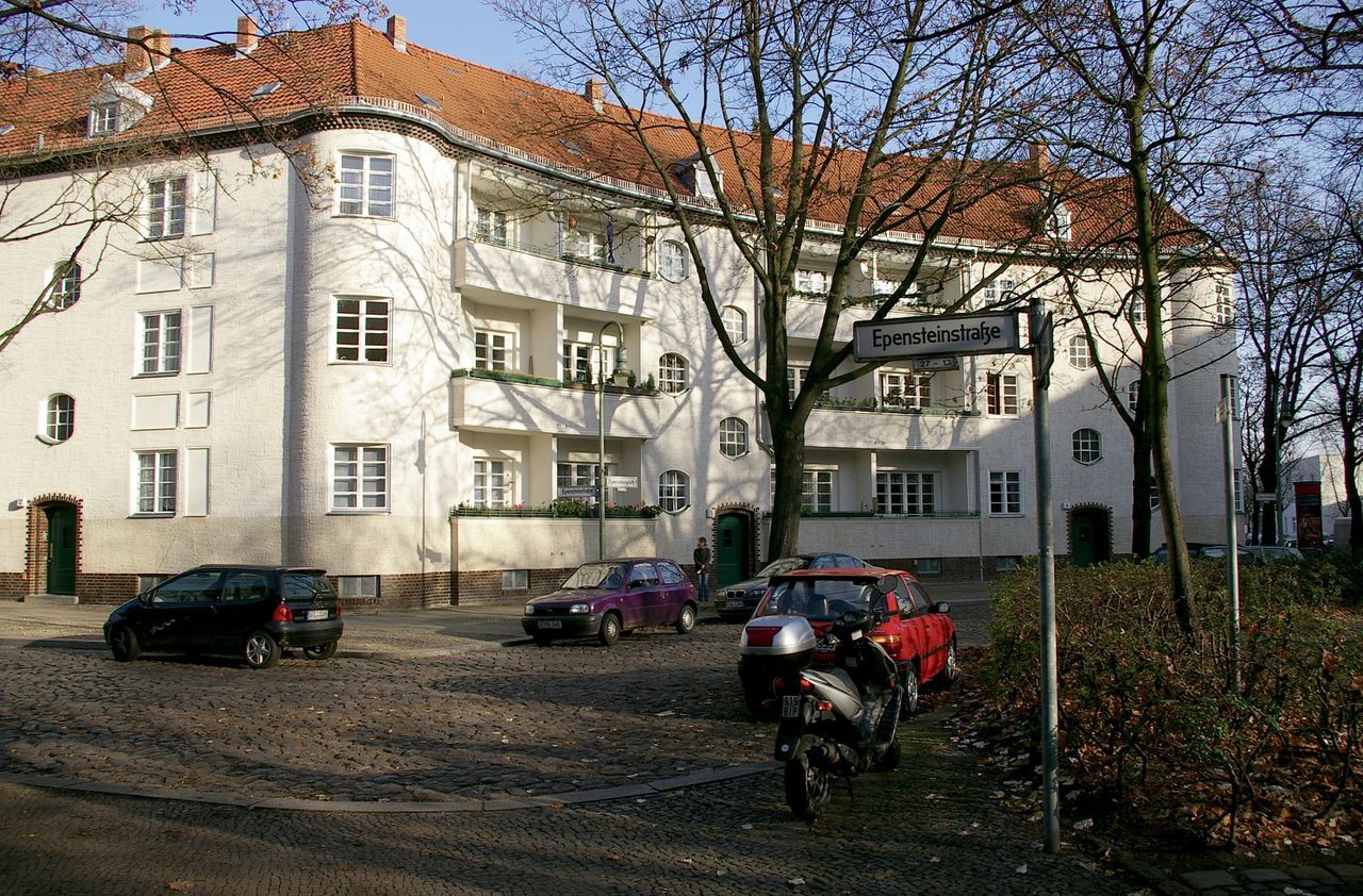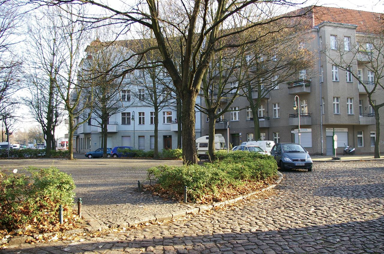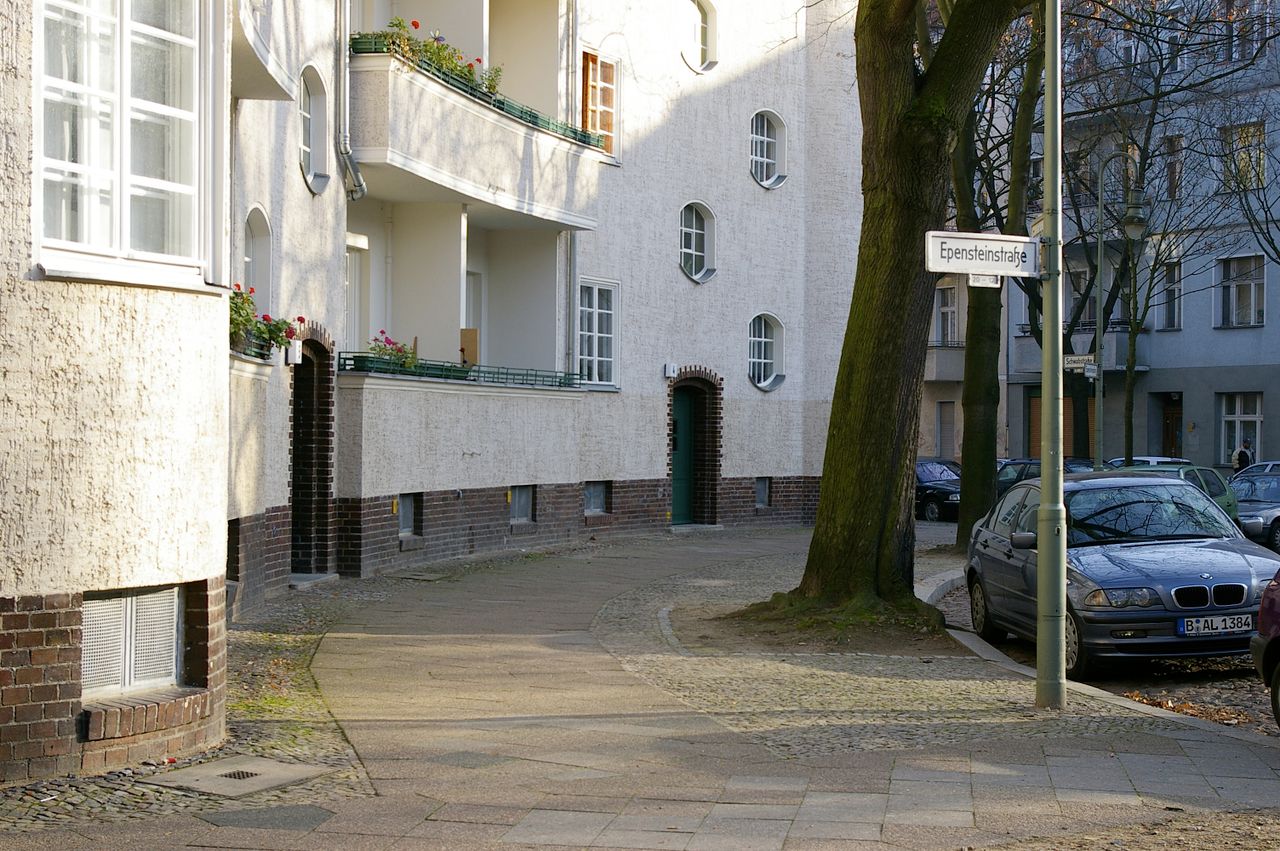 Der Epensteinplatz liegt an Schwab- und Epensteinstraße. Die Häuser sind zum Teil zum Platz hin gerundet.