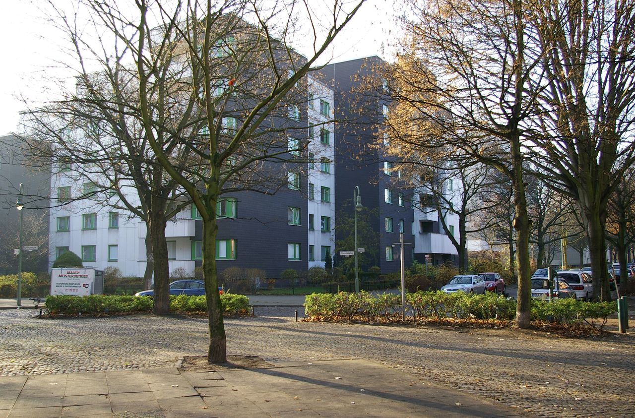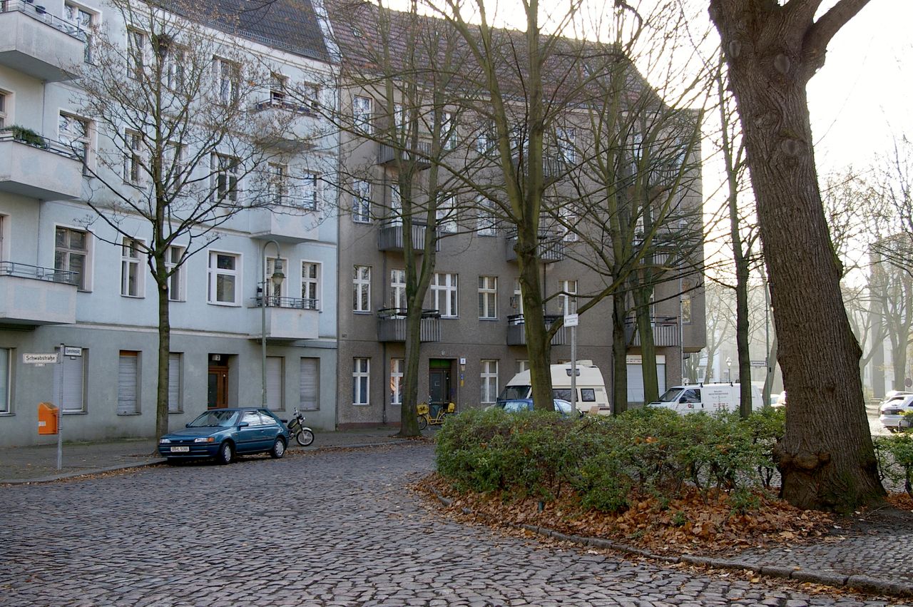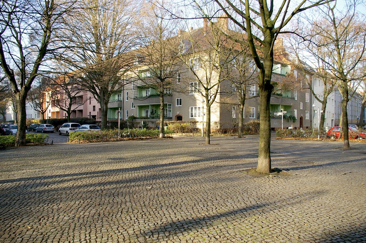 Der Epensteinplatz liegt an Schwab- und Epensteinstraße. Die Häuser sind zum Teil zum Platz hin gerundet.