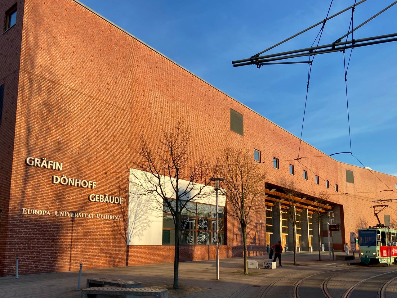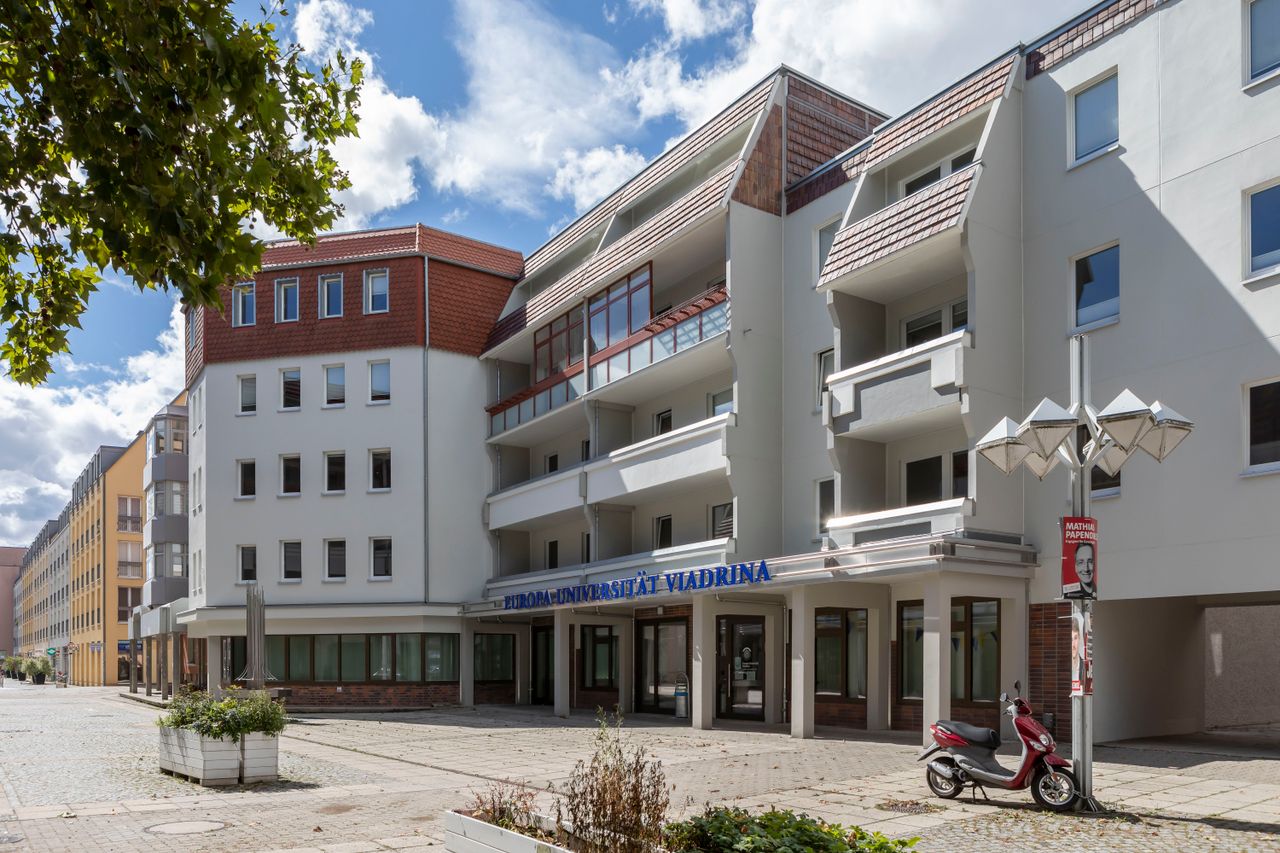 Die meisten Gebäude der Europa-Universität Viadrina in Frankfurt (Oder), die Universitätsbibliothek, Seminarräume sowie die Büros des Präsidenten, vieler Lehrstühle und große Teile der Universitätsverwaltung - liegen im Stadtkern, direkt an der Oder und nahe der Grenzbrücke zu Polen.