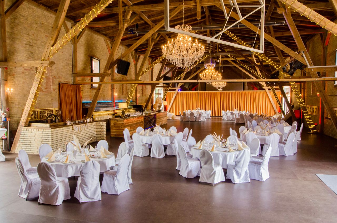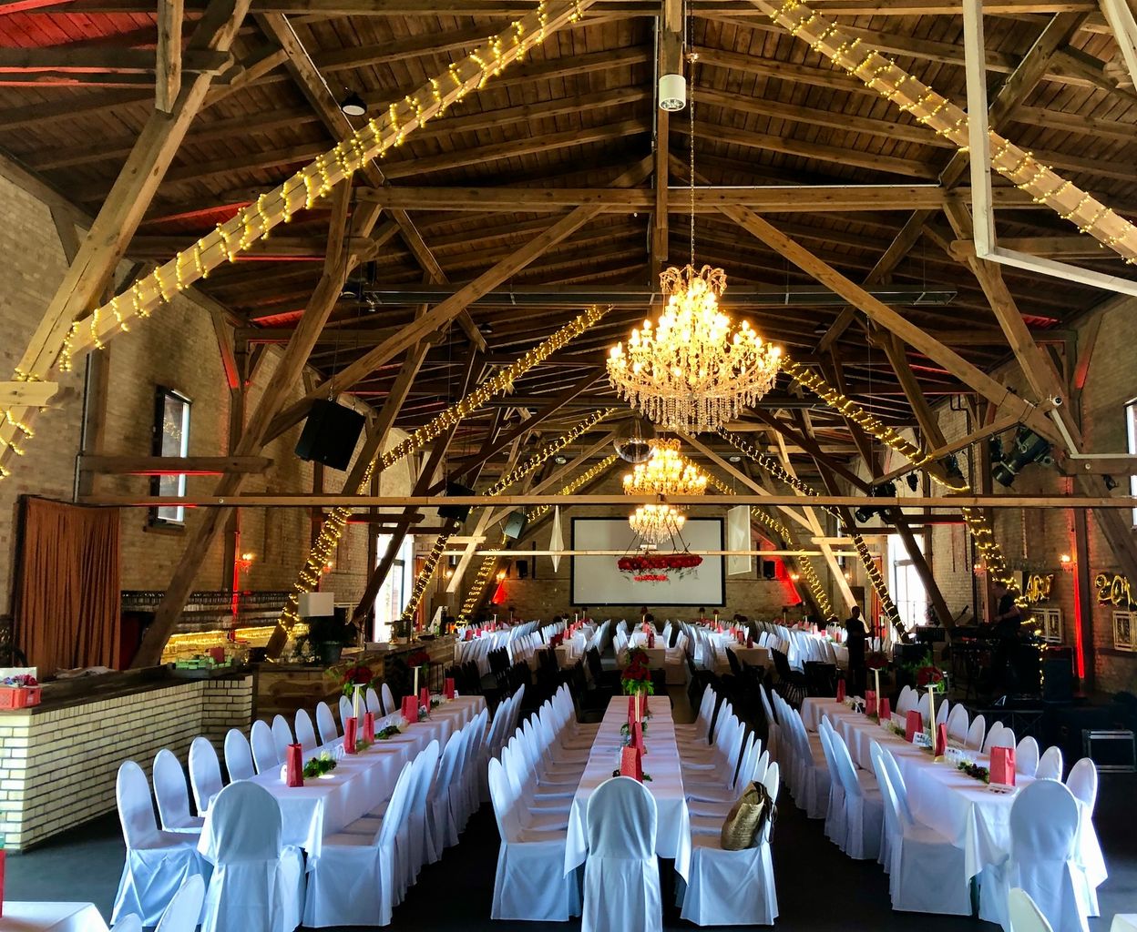 Als ganz jährliche Eventlocation ermöglicht diese Raum für bis zu 800 Personen und kann je nach Personenanzahl sowie Anlass separiert werden. Mit den unterschiedlichen Bestuhlungs- und Funktionskonzepten schafft die Scheune variable Nutzungsmöglichkeiten.