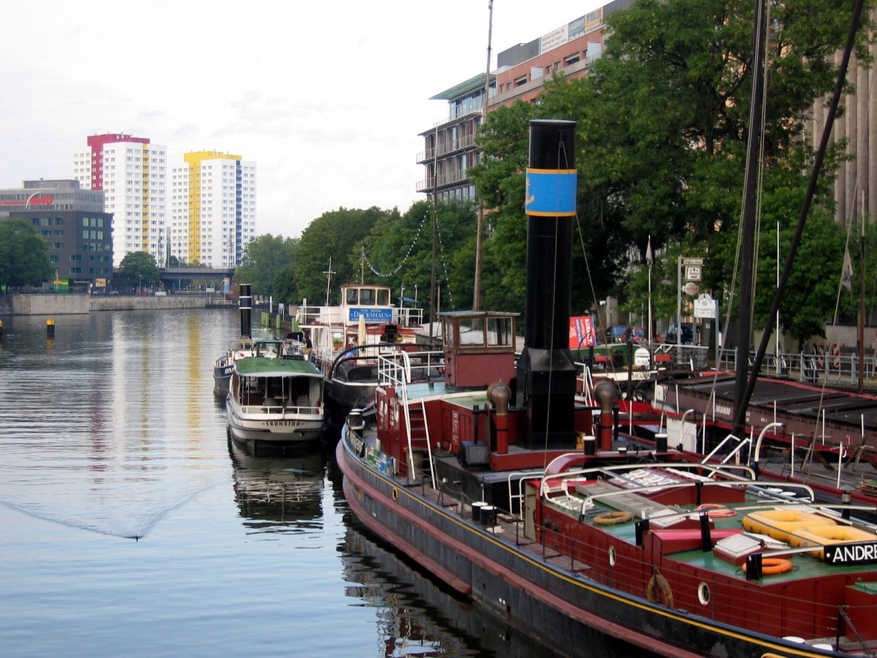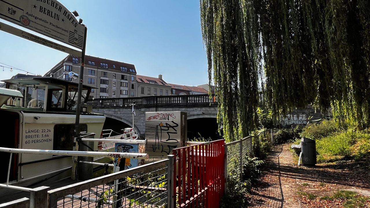 Die acht Hektar große Insel gehörte zum ältesten Teil der mittelalterlichen Stadt Cölln. Bis ins 15. Jahrhundert wohnten dort wohlhabende Fischer und Schiffer. Im 17. Jahrhundert entwickelte sich die Gegend zum Quartier der armen Leute, dem sogenannten Fischerkiez. Bis zum Zweiten Weltkrieg bewahrte die Altstadt ihr mittelalterlich-malerisches Flair. Im Zweiten Weltkrieg wurde die Fischerinsel weitgehend zerstört, die verbliebene Altbausubstanz wurde von 1967 bis 1971 abgerissen. Nur ein Gebäude blieb erhalten: das Haus Friedrichsgracht 15 von 1740, das jetzt gegenüber am Märkischen Ufer 12 seinen Platz gefunden hat. Bis 1972 entstanden auf der Fischerinsel fünf Hochhäuser und zwei Doppelhochhäuser. Von der Fischerinsel hat man Blichk auf den Historischen Hafen Berlin. Dort ist ein für die Bundesrepublik Deutschland einzigartiges Ensemble von historischen Binnenschiffen verschiedenster Bauart und Herkunft zusammengeführt worden. Insgesamt über zwanzig historische Schiffe, darunter fahrtüchtige Dampfschlepper, typische Berliner Fahrgastschiffe der Jahrhundertwende und historische Maßkähne - zum Teil mit originalen Segeleinrichtungen - können im Zentrum der Stadt in unmittelbarer Nähe zum Nikolaiviertel und Märkischem Museum entdeckt werden. (www.historischer-hafen-berlin.de)