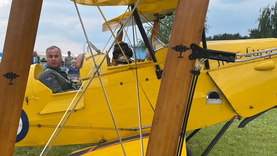 Cooler Flugplatz für kleinere Flugzeuge, Landebahn, Hangars, kultige Gebäude, Oldtimerflugzeuge, Moderne Flugzeuge, Feuerwehr