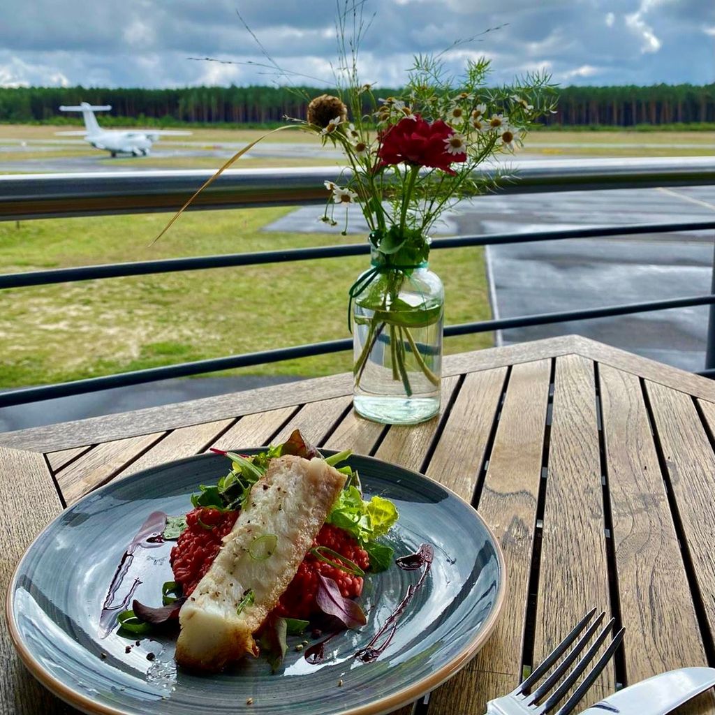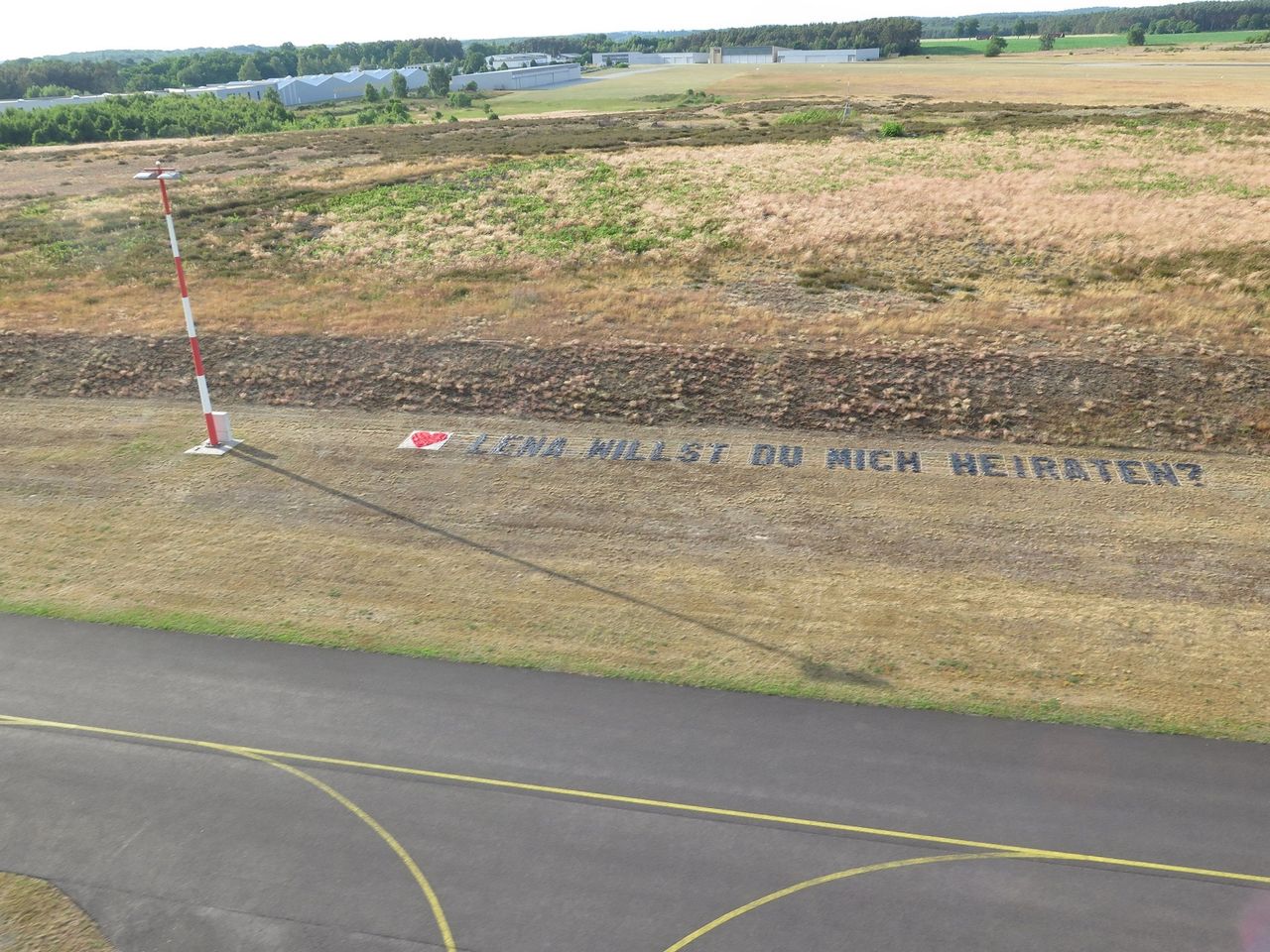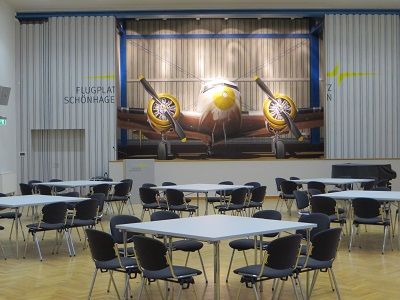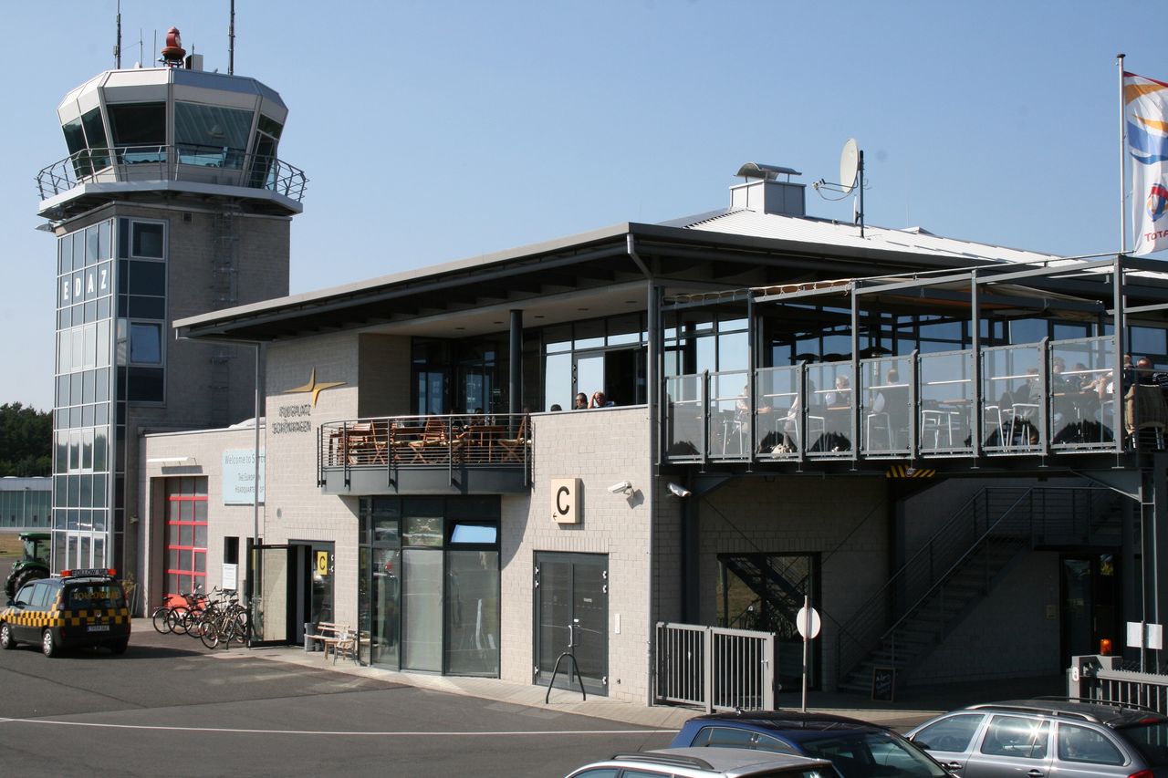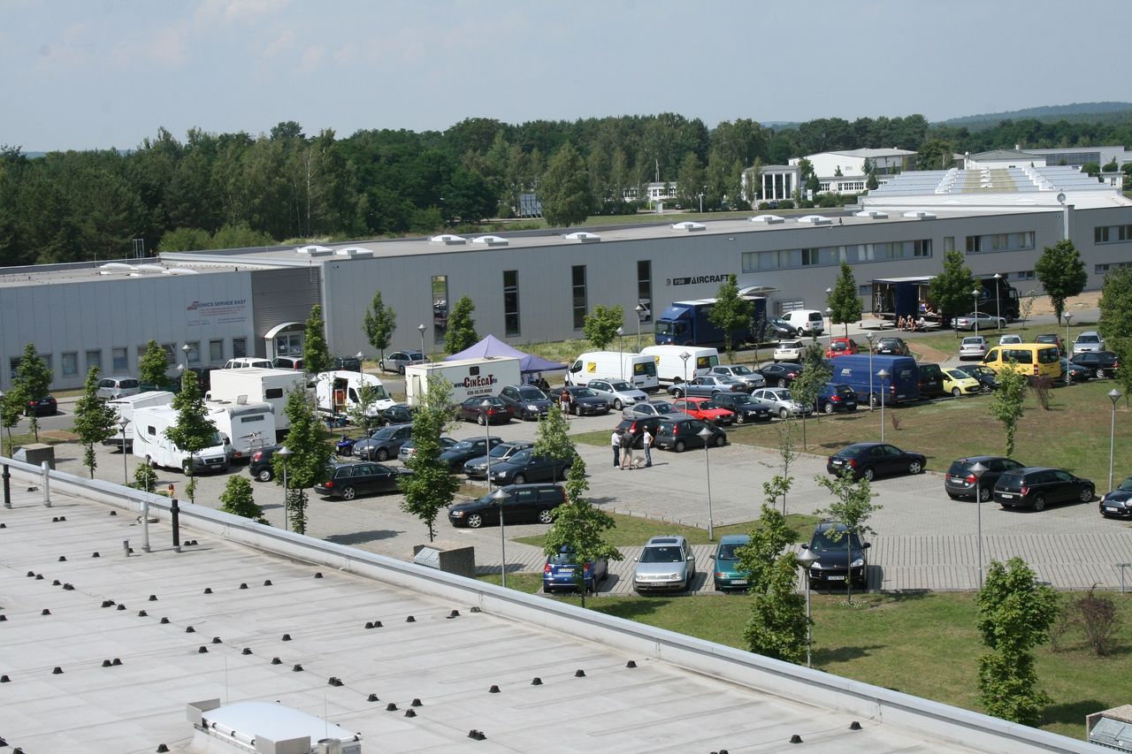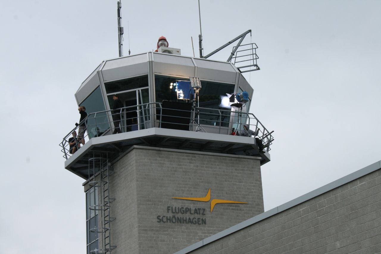 Flugplatz Schönhagen, Luftfahrtaffine Unternehmen, vom Segelflug bis zum Jet-Verkehr, Flugschulen, Luftsportclub, Charterunternehmen, an der B 246 zwischen Beelitz und Trebbin, Flachdachhalle mit grauem Kratzputz, super Restaurant und Tower.
