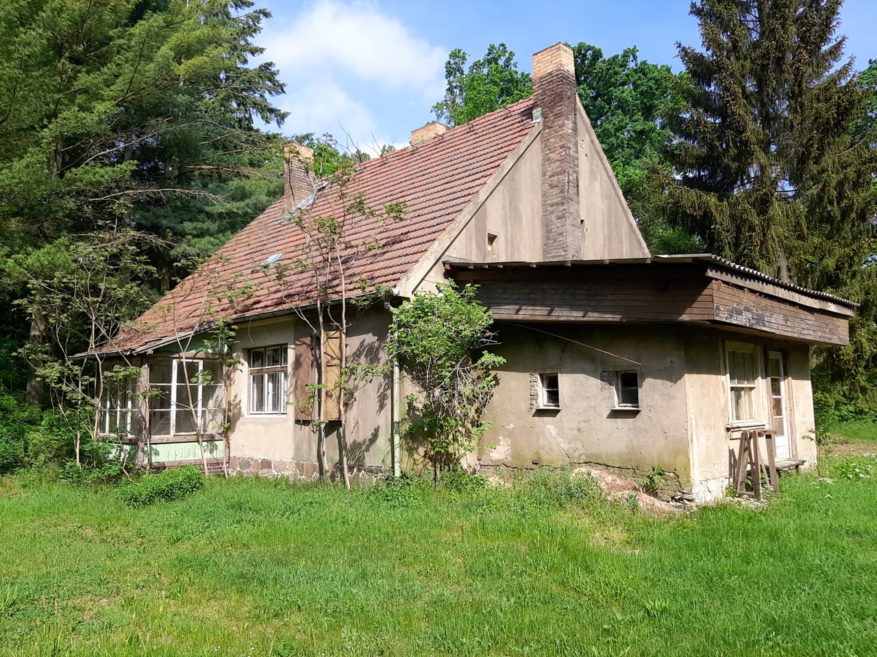 ehemaliges, seit ca. 20 Jahren leerstehendes Forsthaus mit Nebengebäuden in Alleinlage in großem Waldgebiet mit angrenzender Wiesenfläche,