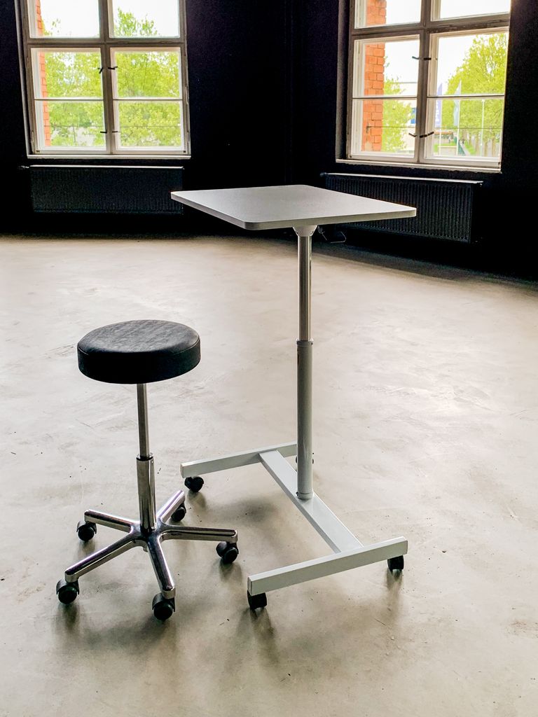 Mobiler Digitisch, Rollhocker, große Stellwände schwarz/weiß, Make-up Tische, Teeküche