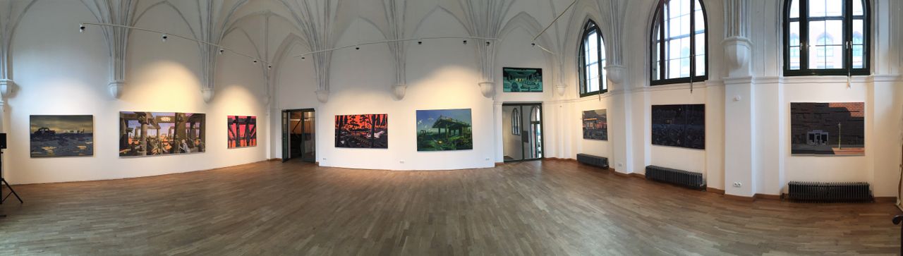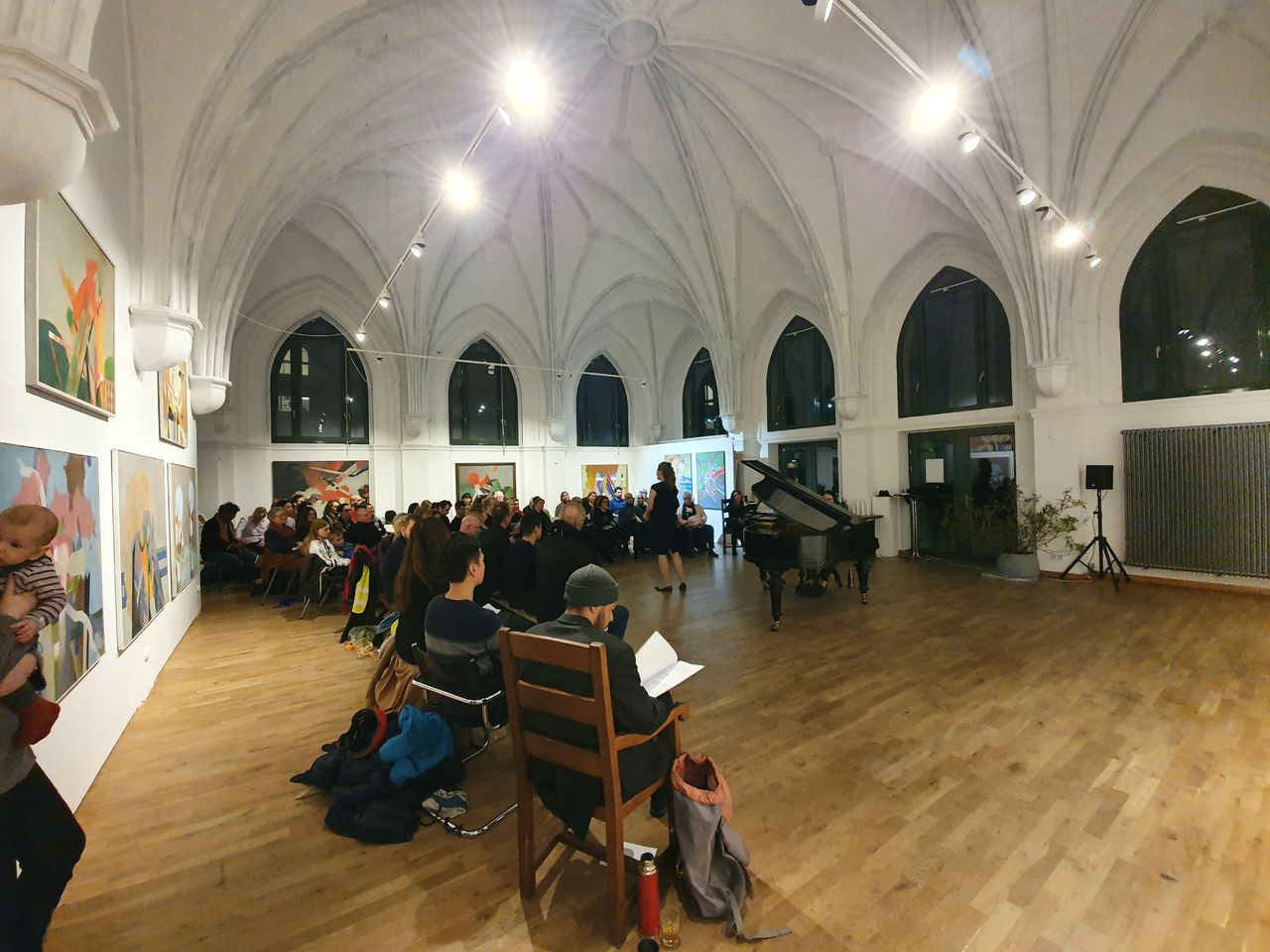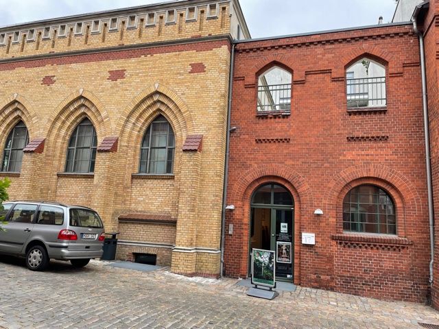 Großer Ausstellungsraum mit Kuppeldecke (8m) (Gotischer Saal, gebaut von Schultheißbrauerei) mit Flügel, angrenzender Galerieraum mit Empore, Schreibtisch und Regale, im Untergeschoss Bilderlager, Küchenzeile, Toiletten, je 2, Atelier