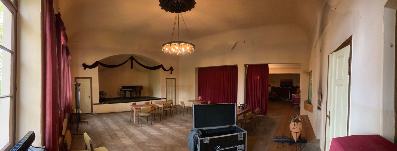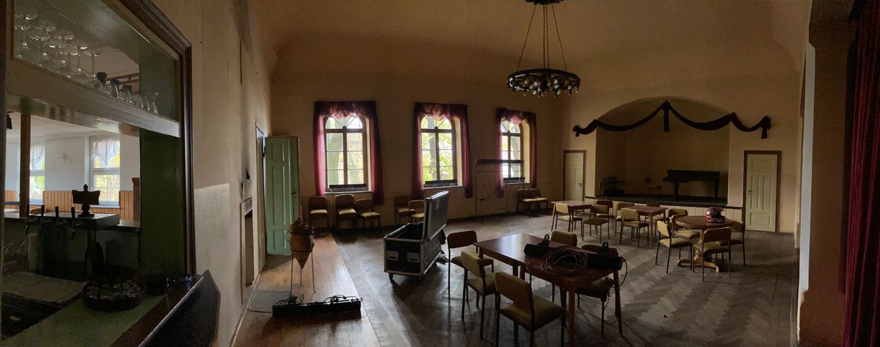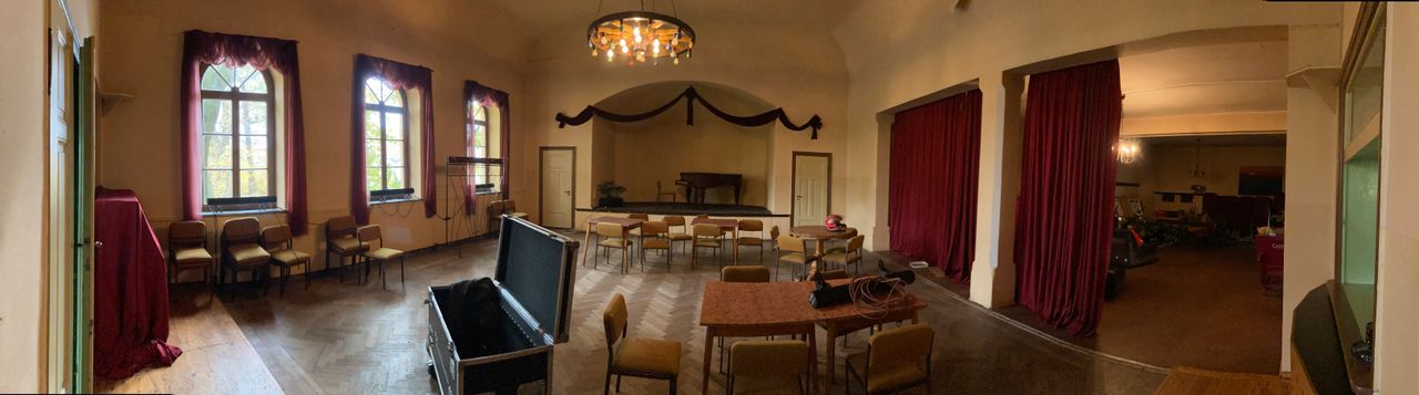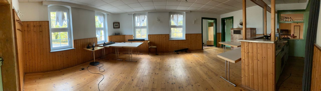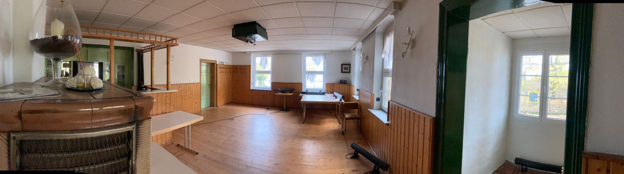 Gewölbedecke, Bühne, Kachelöfen, Flügel, Klavier, Parkett, Originaltüren & -Thekeeinbauten, Inventar Nichtraucher (Rauchen erlaubt)