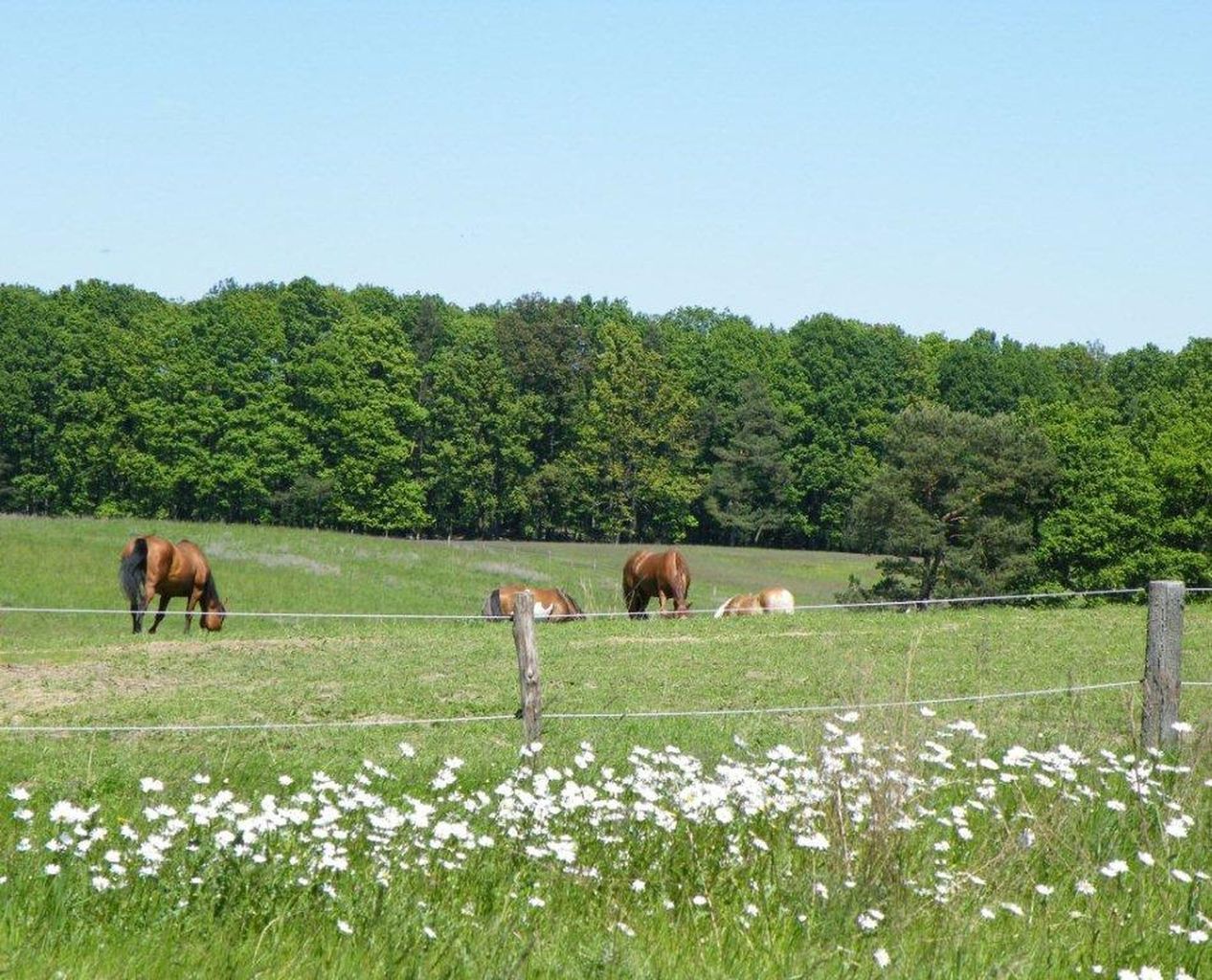Auf dem Gestüt, dessen Stall mit großzügigen Boxen ausgestattet ist, kommen Pferdenarren auf ihre Kosten, denn die Wälder der Schorfheide laden zu wunderschönen Ausritten ein.