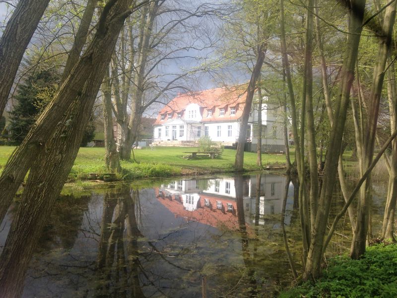 Das 1735 errichtete und um die Jahrhundertwende 1900 um Portal, Gartenpavillon und Giebelanbauten erweiterte Gutshaus wurde nach dem zweiten Weltkrieg einer Schulnutzung zugeführt. Nach der Schließung der Schule im Jahr 1995 stand das Gutshaus 15 Jahre leer und wurde 2012 von den neuen Eigentümern denkmalgerecht und gestalterisch anspruchsvoll renoviert. Das Grundstück umfasst ca. 20.000 qm und besteht aus einem Vorplatz und einem weitläufigen Park mit altem Baumbestand. Ein Teich in dessen Mitte eine kleine Rousseau Insel liegt begrenzt den Park auf der westlichen Seite und lässt den Blick frei über die angrenzenden Felder und Hügel bis zum