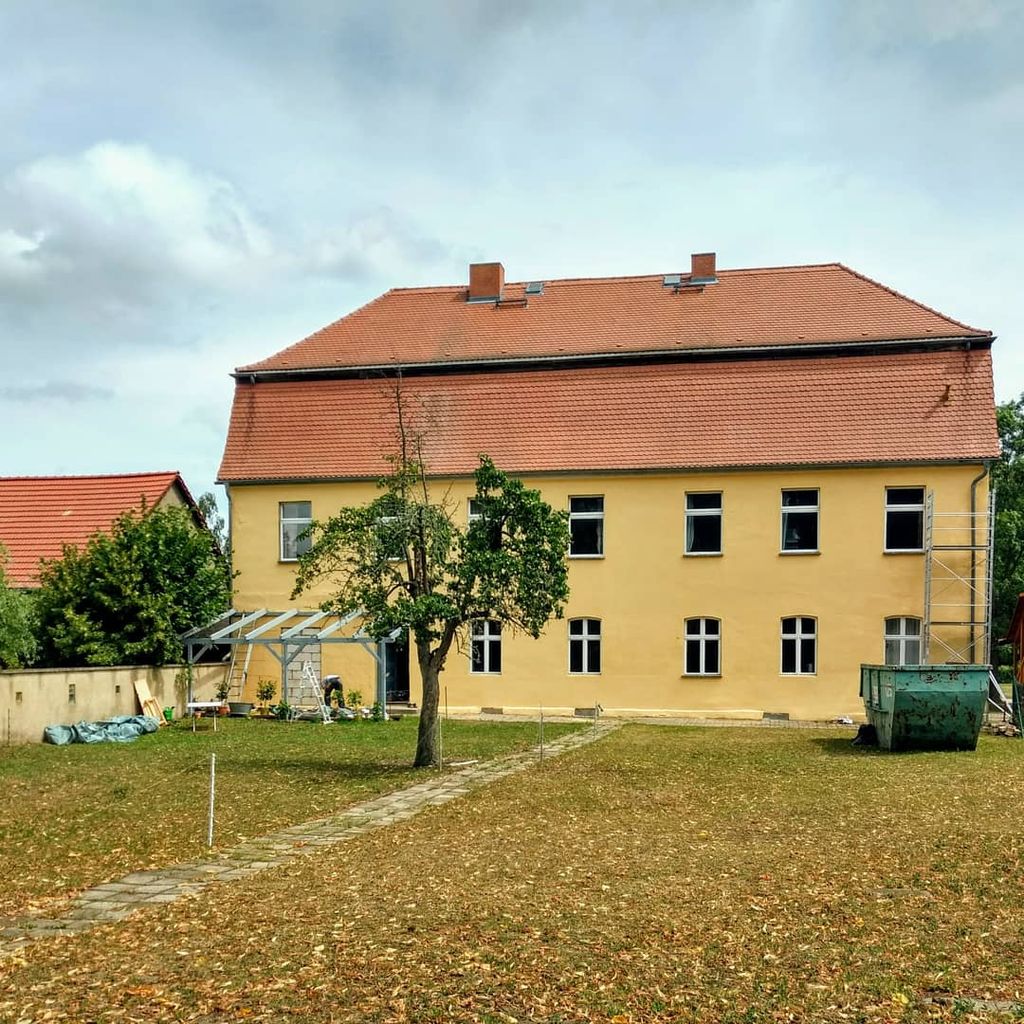 Das ehemalige spätbarocke Gutshaus befindet sich in behutsamer Sanierung. Die Räume im Obergeschoss (Wohnzimmer, Schlafzimmer, Musikzimmer, Esszimmer, Atelier) sind bereits nutzbar und in einem Stilmix zwischen Rough, Shabby und Antik eingerichtet. Die Dielenböden sind freigelegt und im Originalzustand, alte Türen. Im Erdgeschoss gibt es 5 noch unsanierte große Räume, z. T. mit Holzböden und alten schönen Fenstern, die z.Z. vollkommen frei genutzt und gestaltet werden können. Auch ein alter Kachelofen ist noch vorhanden. Hervorzuheben ist das historische Treppenhaus mit gewundener Holztreppe. Bilder auch auf Instagram unter Gutshaus_Pitschen.