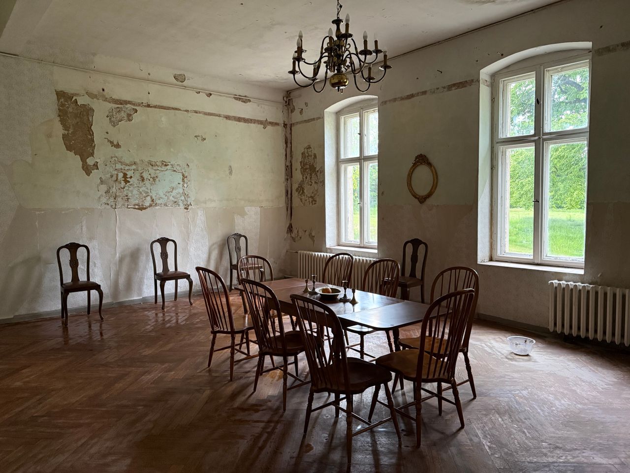 Das Gutshaus selbst befindet sich in einem rohen, unrenovierten, jedoch sehr charmanten Zustand. Sichtbare Spuren der Geschichte verleihen dem Ort eine einzigartige Atmosphäre – authentisch, unverfälscht und voller Charakter.