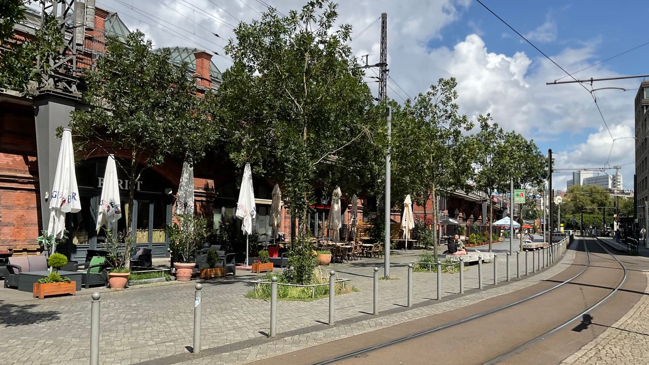 Der Hackesche Markt in der Spandauer Vorstadt des Berliner Ortsteils Mitte ist ein Verkehrsknotenpunkt, wo sich die Straßenbahn und S-Bahn Hackescher Markt treffen.
