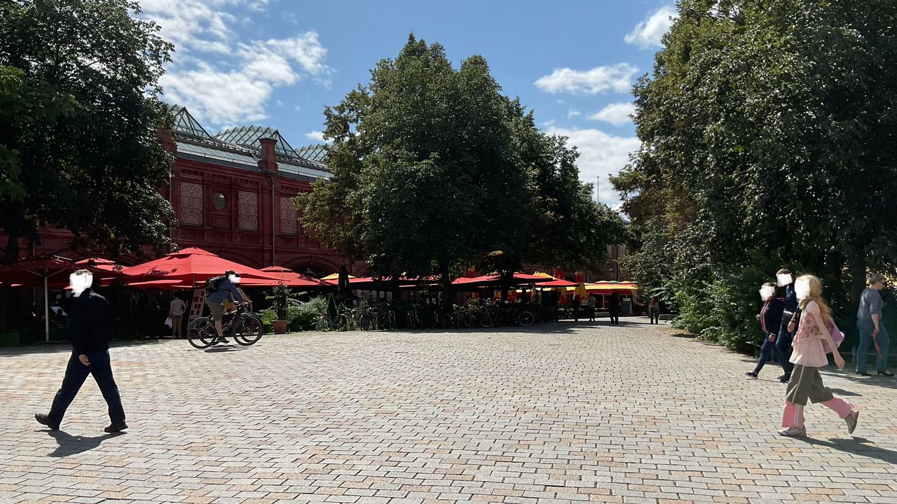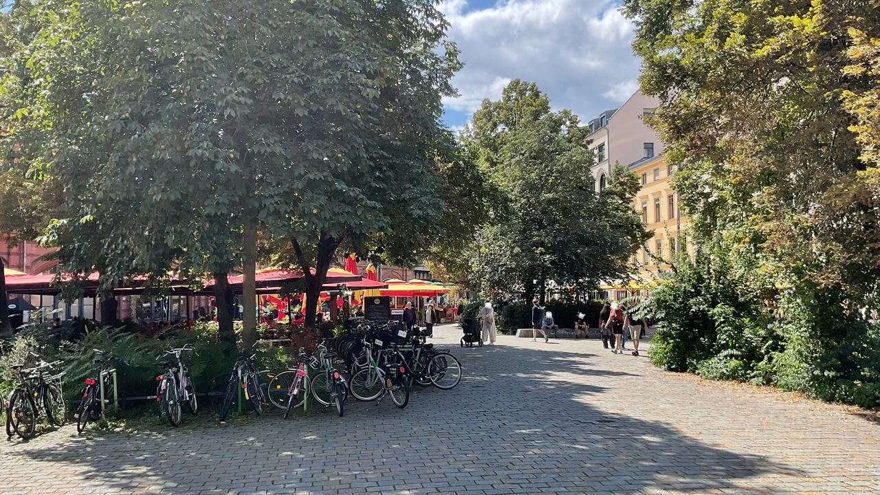 Der Platz ist geprägt durch seine vielen Cafés und den Wochenmarkt.