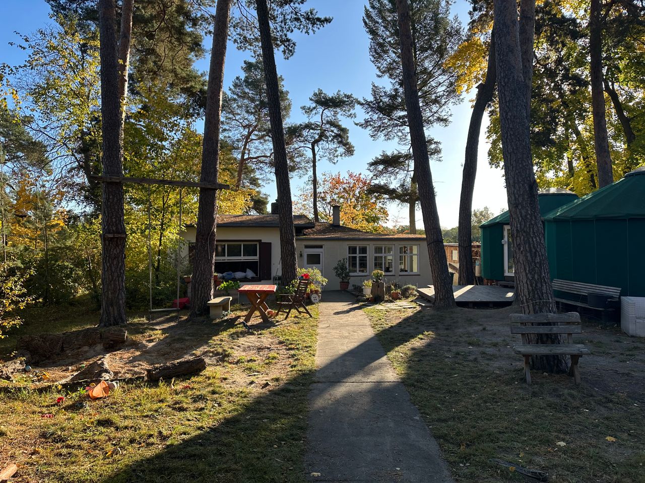 Es handelt sich um ein Sommerhaus am Groß Glienicker See – gebaut in den 20er Jahren sowie zwei moderne Jurten mit Heizung durch Wärmepumpe im Garten. Das Haus hat 3 Schlafzimmer, ein offenes Wohn-/Esszimmer und ein Bad. Ein Kamin steht im Wohnzimmer. Die Jurten sind je 20qm2 groß.
