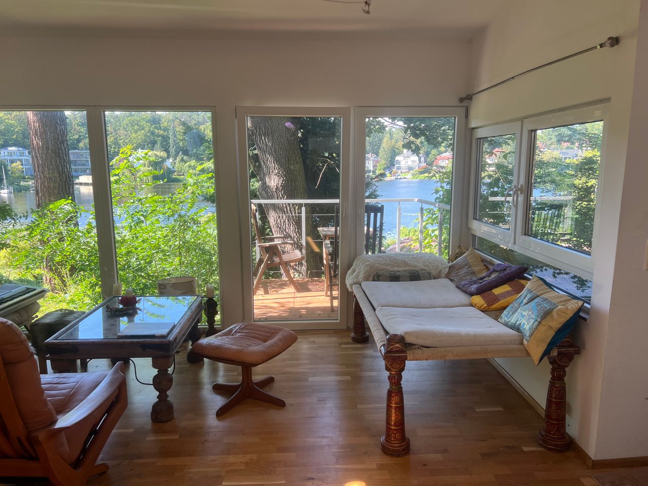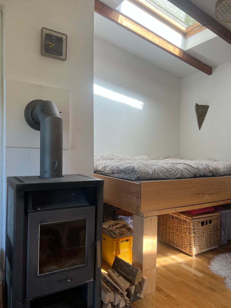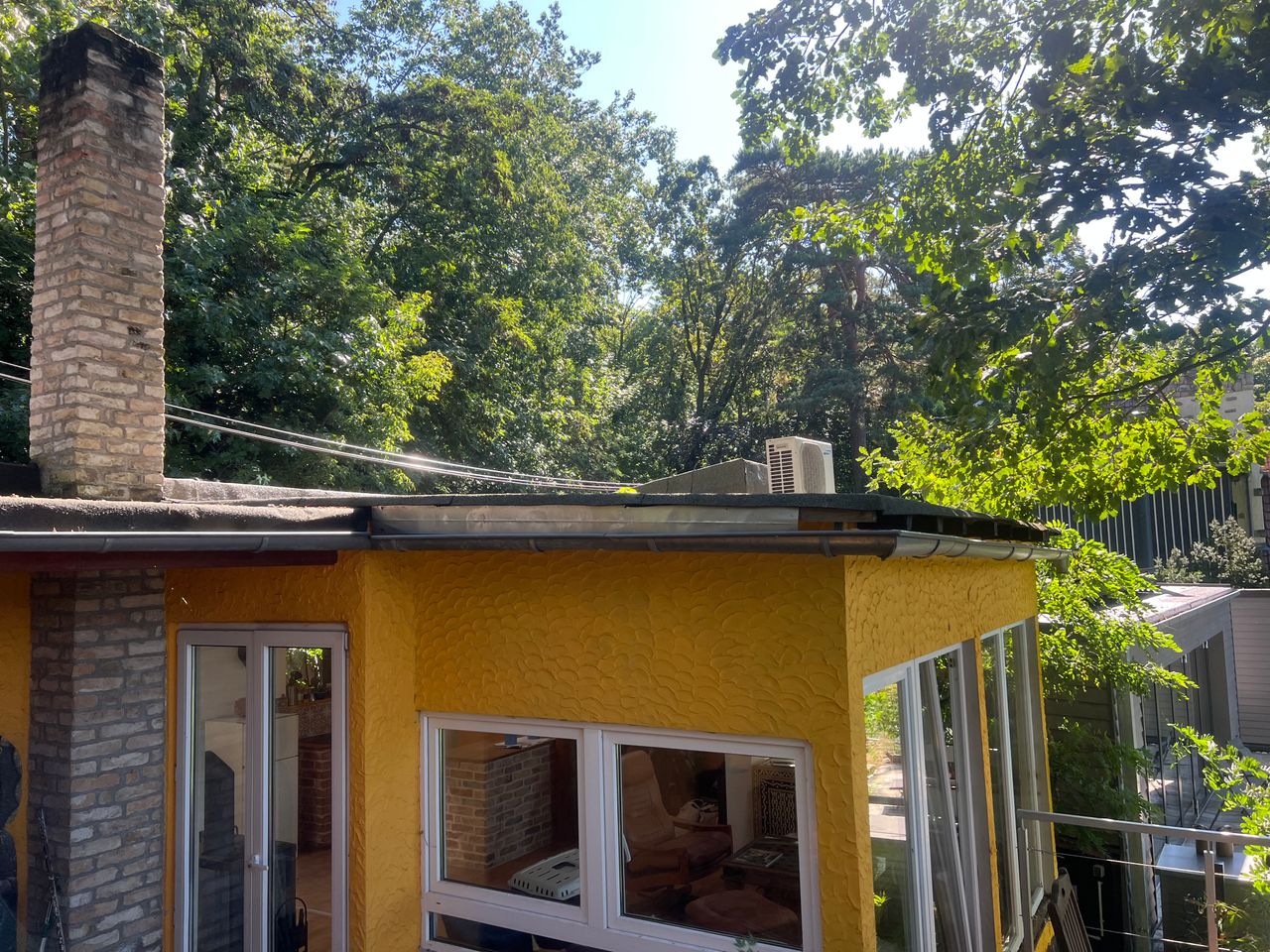 Das kleine Häuschen befindet sich im Wald ebenerdig zum Waldweg oben auf einem Hanggrundstück mit tollem Blick über das unten am Stölpchensee gelegene Haupthaus.