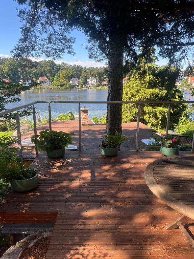 gehalten und verfügt über eine Terrasse , auf der man die untergehende Sonne über dem Stölpchensee genießen kann.