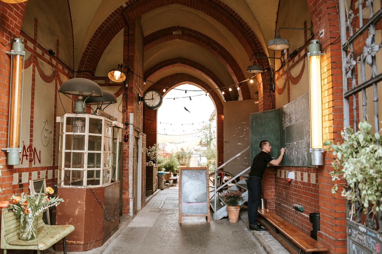 Das Hallesche Haus ist ein einzigartiges historisches Wahrzeichen und Eventlocation am Landwehrkanal in Kreuzberg. Neben hohen Decken, gewölbten Torbögen und einem privaten Garten bietet es einen besonderen Lehrplan: In seinen früheren Jahren Heimat des Alten Postamt 61, in seinen wilderen Tagen ein Veranstaltungsort für Berliner Nachtclubs und jetzt ein wunderschöner 270-Quadratmeter-Raum mit wiedereingesetzten Oberlichtern, originalem Mauerwerk und einem stilvollen Auftritt. Geräumig genug für große Veranstaltungen, aber auch mit einer intimen Atmosphäre, die für ein Familientreffen geeignet ist, können unsere Räumlichkeiten perfekt auf Ihre Veranstaltungswünsche zugeschnitten werden. Wir bieten eine Reihe von hauseigenen Caterings an - von Aperitifs und kleinen Gerichten bis hin zu mehrgängigen Menüs im family style, die auf Eure Bedürfnisse zugeschnitten werden können.