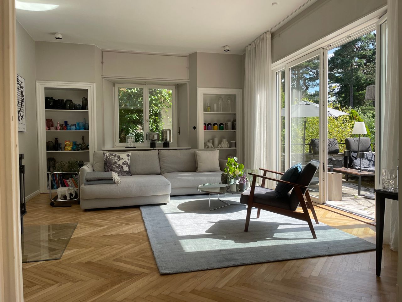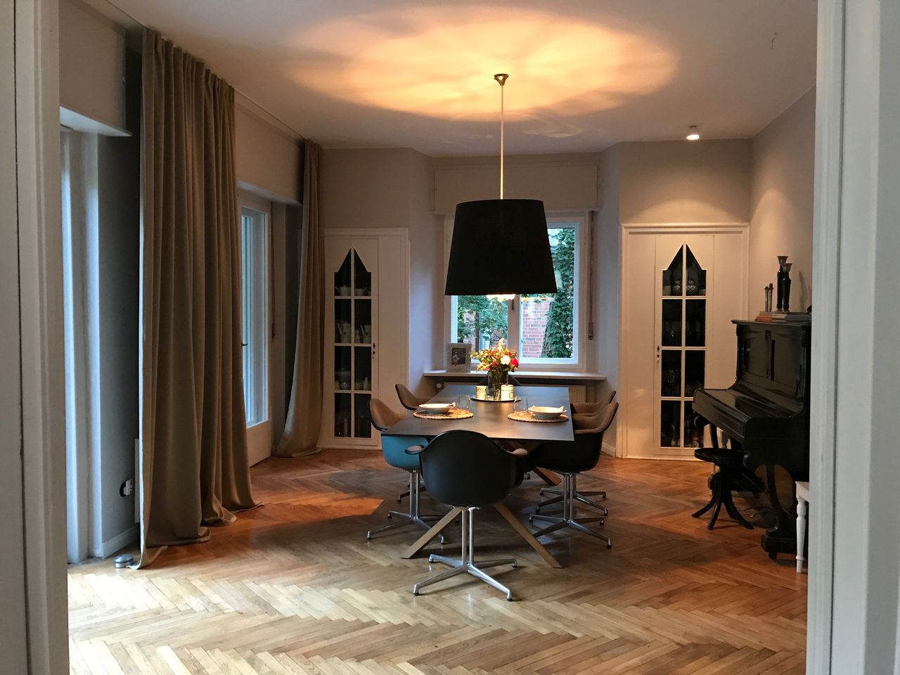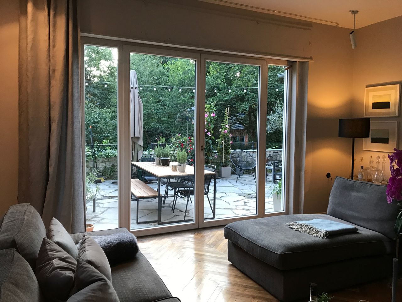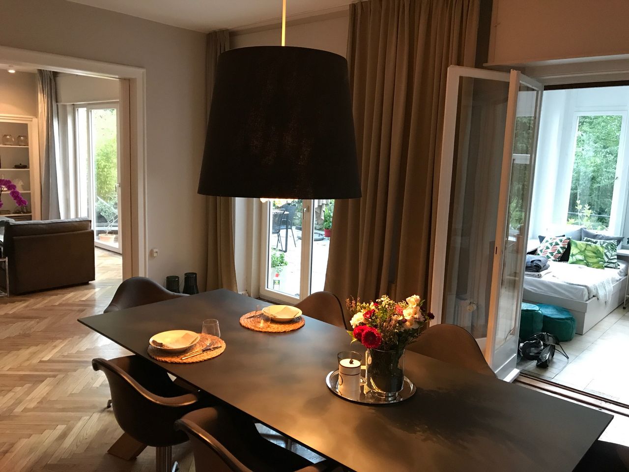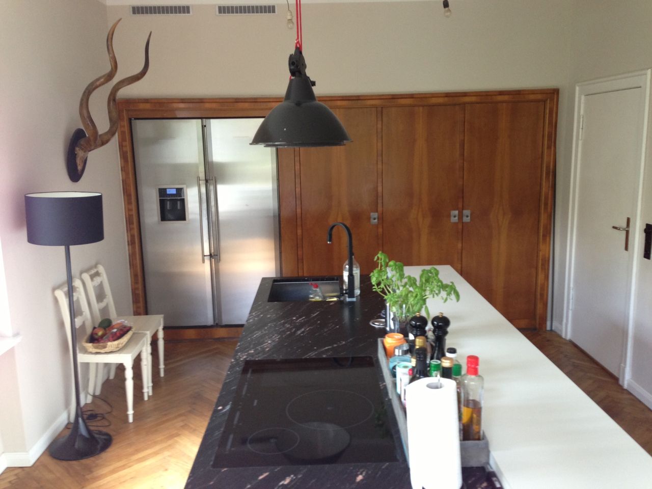 Haus / Villa in zentraler Lage, 6km nach Potsdam in Wilhemshorst (Michendorf) 250qm Wohnfläche 1300qm Garten Gesamte Haus verfügt über viele original erhaltene Elemente aus den 30er Jahren. Komplett renoviert, Baujahr 1936 Vollunterkellert mit Tiefgarage, Sauna EG: - Küche mit modernem Küchenblock, Einbauschränke Original 30er Jahre - Wohnzimmer mit eingebauten Wandregalen, original, altes Parkett Fischgrät) - Eßzimmer mit eingebauten Wandvitrinen, Parkett Fischgrät, original - angrenzender Wintergarten, alles original, mit Blick in der Garten/Terrasse, Solnhofer Platten - Terrasse ca. 1m hoch gebaut, 45qm, Blick in den Garten Garten ca 1300qm. Treppenhaus mit Original-Treppe & Handlauf 30er Jahre OG: - Schlafzimmer mit angrenzendem Bad, neues Parkett, neues Bad, Sichtbeton - Ankleidezimmer - Arbeitszimmer/Aufenthaltsraum - Gästezimmer - weitere Badezimmer mit Badewanne