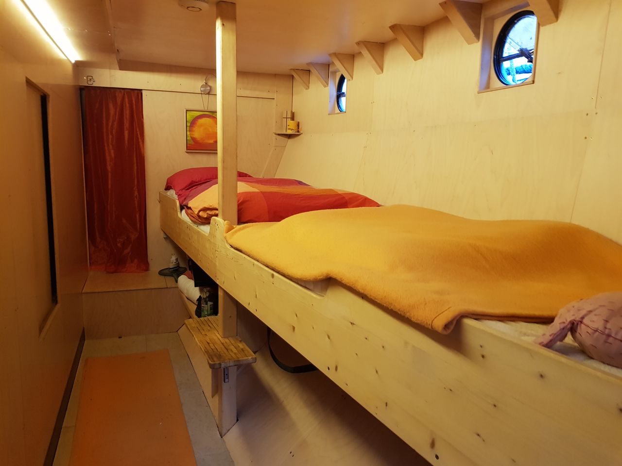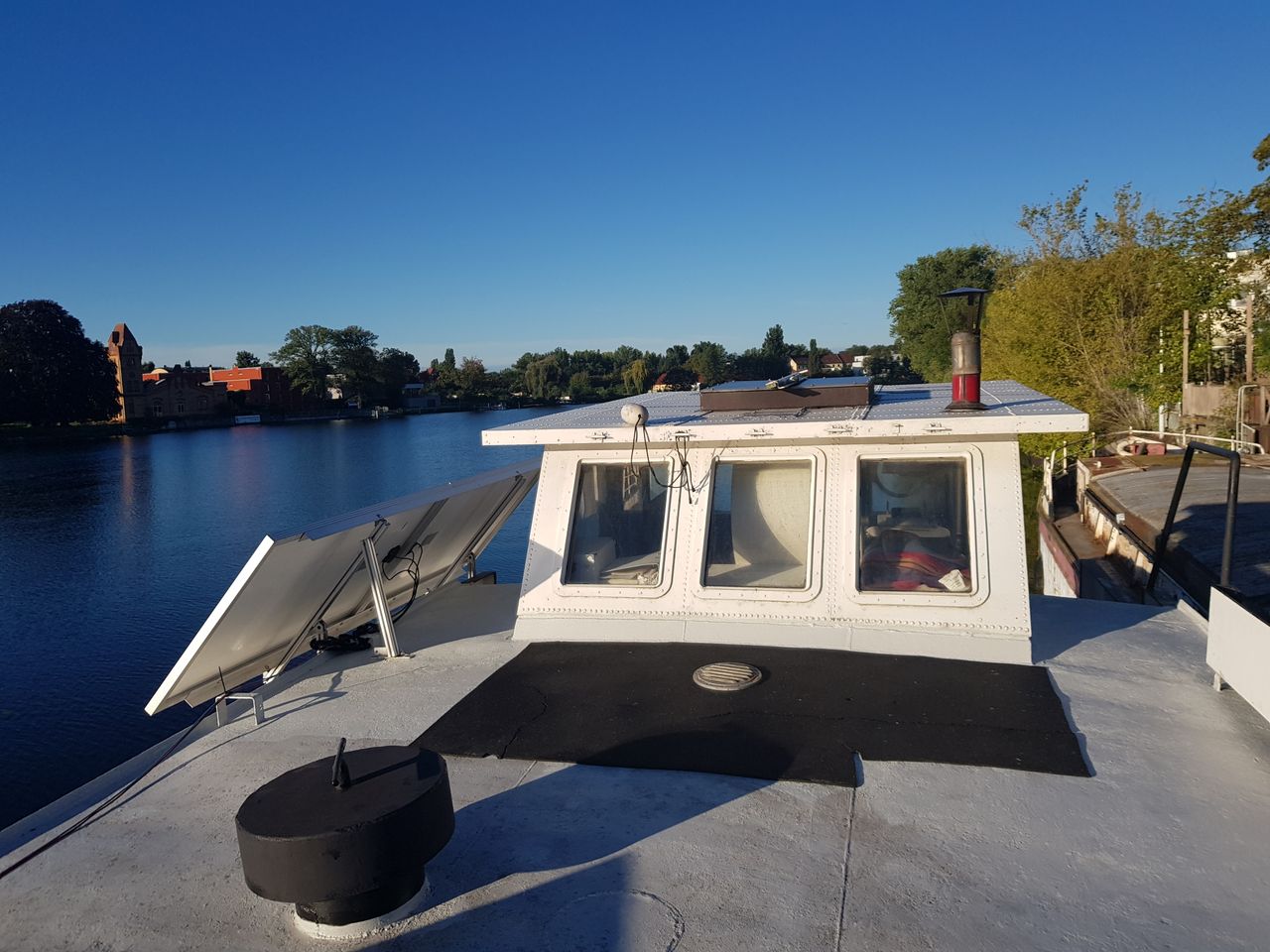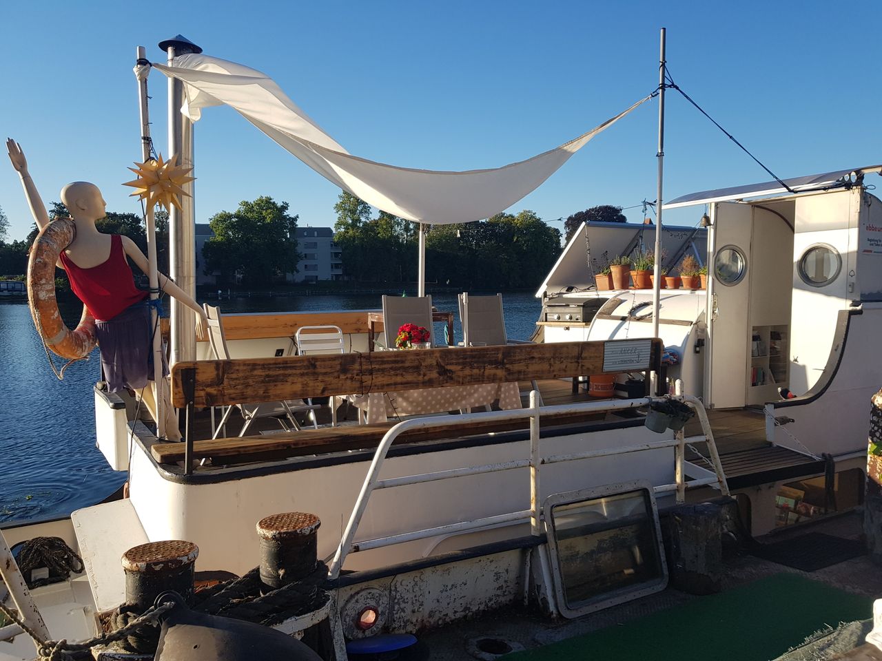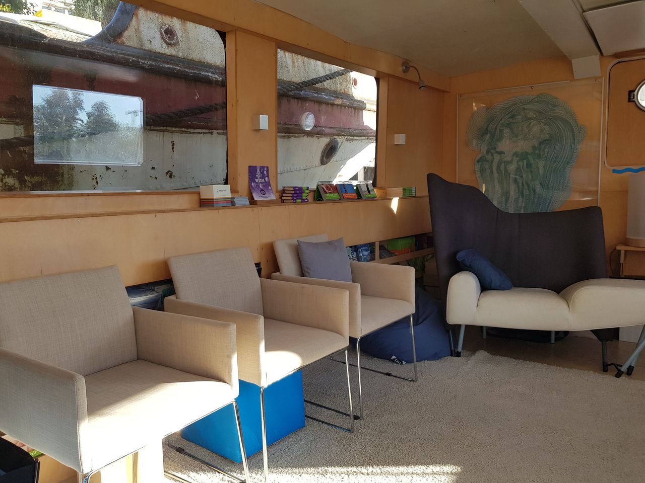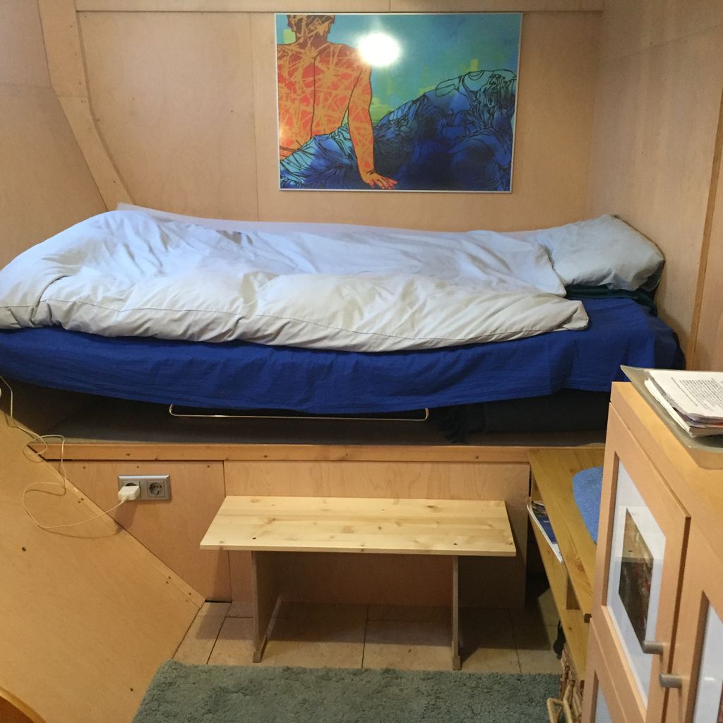 Ich lebe und arbeite auf einem Haus- und Seminarschiff, umgebautes DDR Marineschiff, das jetzt eine Art Loft auf dem Wasser ist.