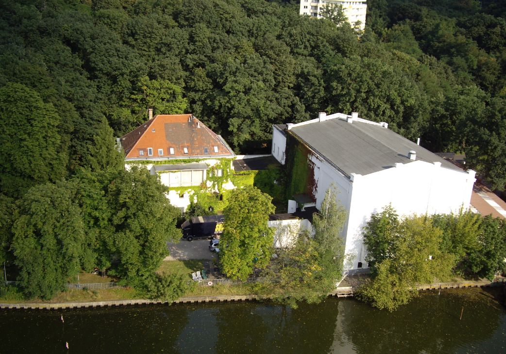 Ehemalige Stuckvilla, modernisiert und im Stile der 50/60er Jahre erweitert mit schickem Eingangsbereich (50/60er Jahre Moderne), Kino, Tonstudios und Büro- und Konferenzräumen. Der große Konferenzraum ("Havelzimmer") hat eine spektakuläre "floor to cieling" Fensterfront, direkt mit Blick auf den See und die kleinen Yachthäfen am Stößensee. Des weiteren hat er schwere klassizistische Holztüren und einen edlen, dekorativen Parkettfußboden.