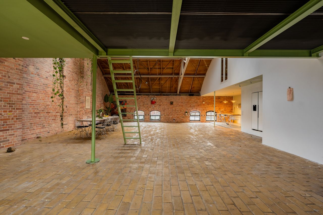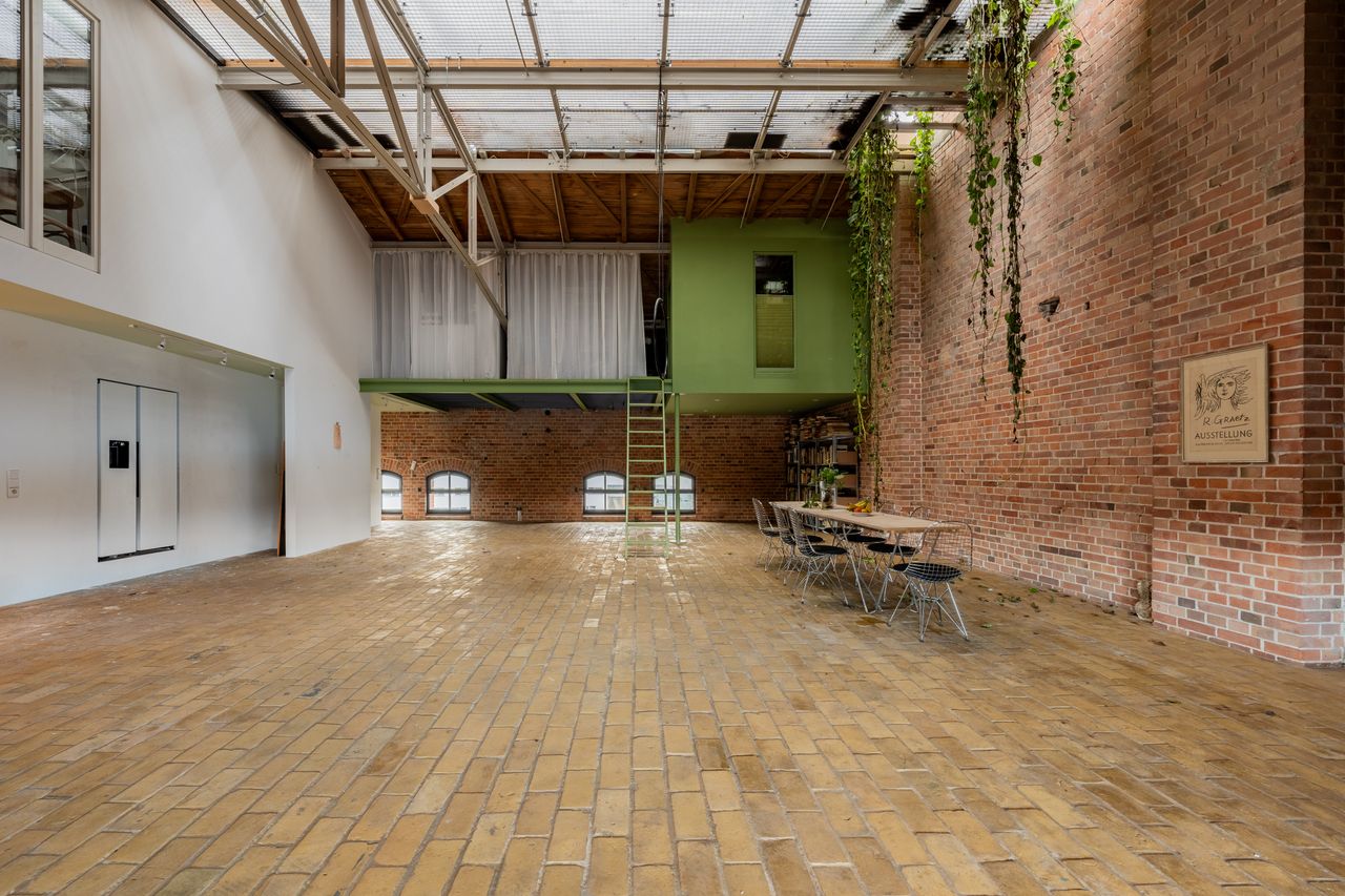 Ein historisches Gebäude, ehemaliger Palmkernölspeicher direkt am Wasser der Rummelsburger Bucht. Große Hall mit Höhe von 5,5 Metern, die auch eine Küchenzeile hat und zusätzlich auf weiteren Ebene ein Schlafzimmer, ein weiterer Wohnbereich mit Klavier und ganz oben ein Raum mit Panoramablick auf die Bucht ermöglicht durch komplette Glasfront. Zwei Couches, ein langer Tisch und Stühle sowie Kunst/ Bilder gehören ebenfalls zur Ausstattung.