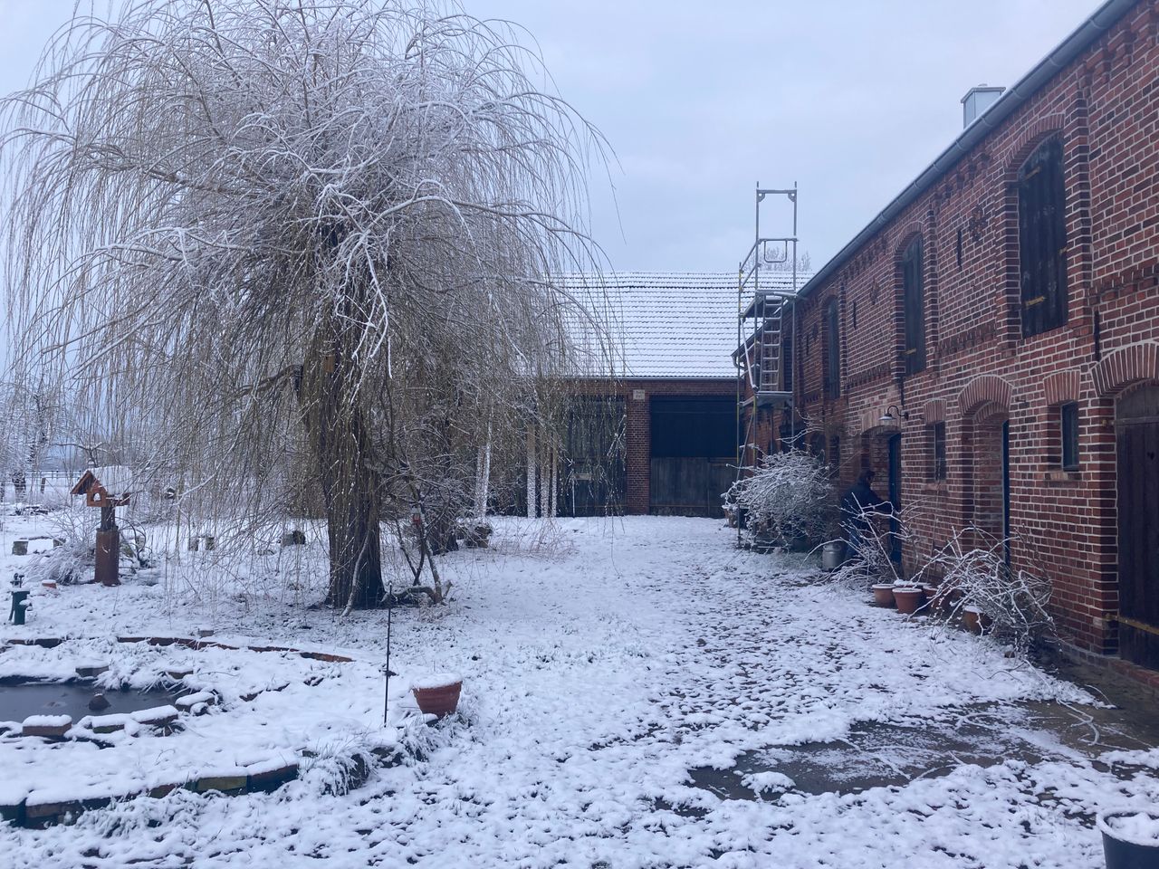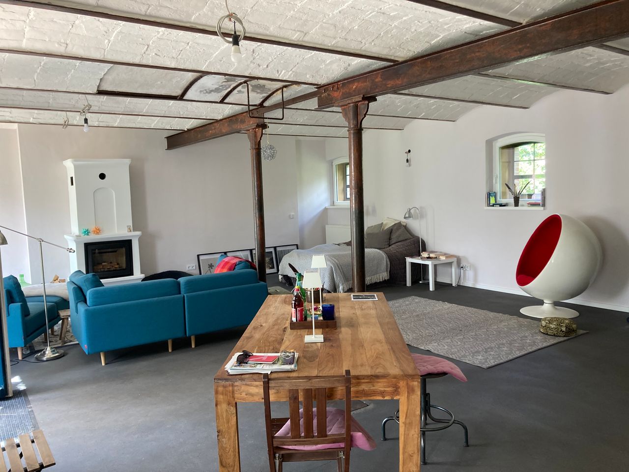 Hof von Haackes was a small family farm for seven generations. The eye-catcher is of course the former stable, but there is a huge barn as well as a small house whose oldest part is from ca. 1780. Additionally there is a modest orchard and a field with wildflowers behind the barn. The "Gemeindehaus" (community center) is our immediate neighbour, giving the location access to a kitchen for catering and multiple bathrooms as well as room to park trailers and trucks.