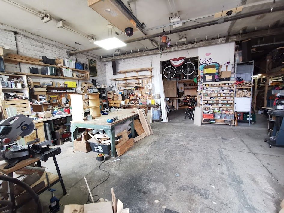 70qm Holzwerkstatt und 45qm Metallwerkstatt.