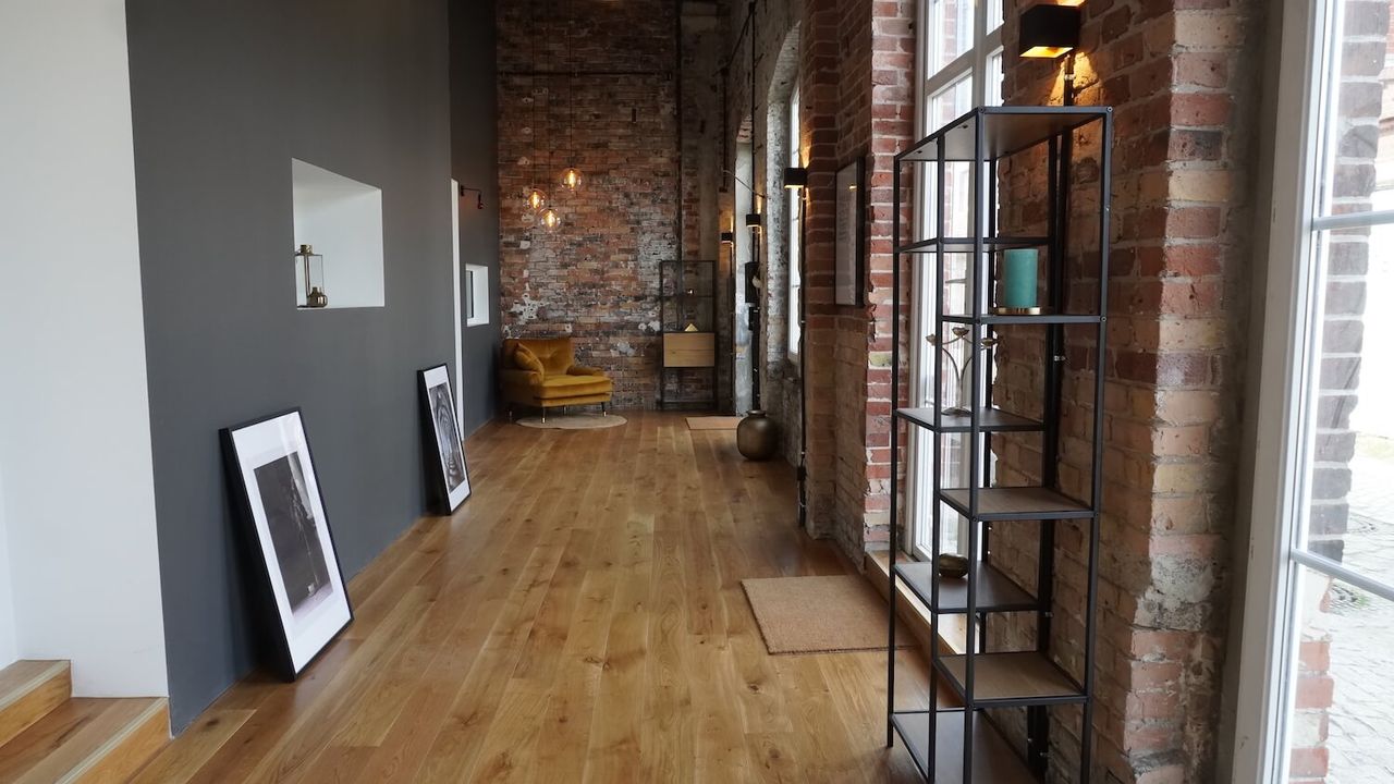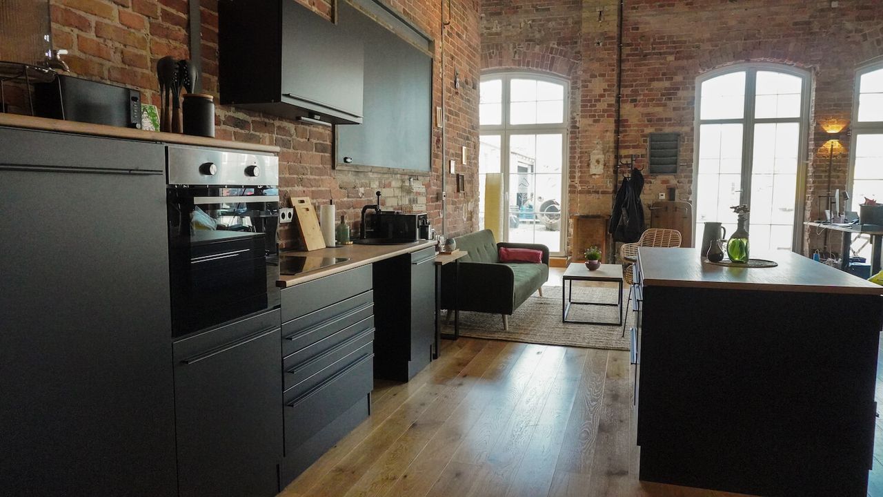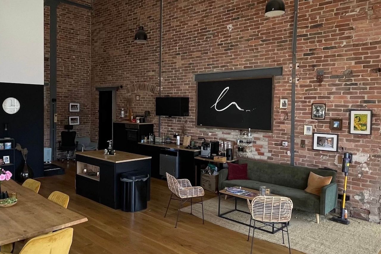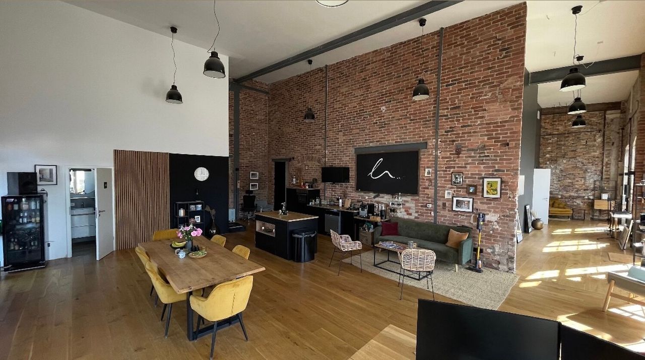 The studio is housed in a former workshop hall, part of an old battery factory on an industrial site. Inside, you'll find a spacious office and meeting area with an open kitchen, where modern design meets classic brick walls. Situated right on the Spree River, it offers a unique blend of charm, functionality and space for your photo and film productions. As an added bonus: the property also features two beautifully designed sound studios, perfect for dubbing and audiobook recordings, all equipped with cutting-edge technology.