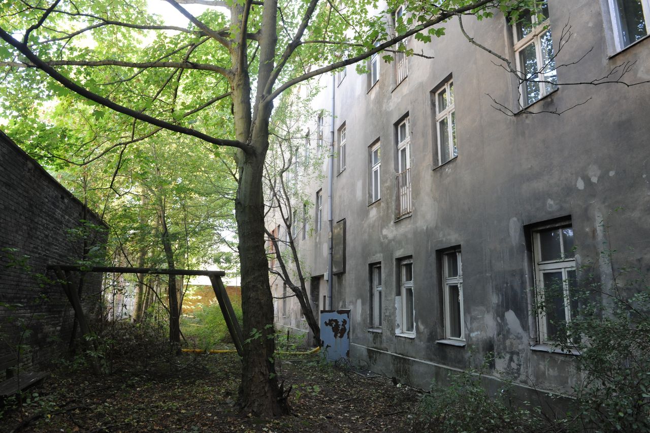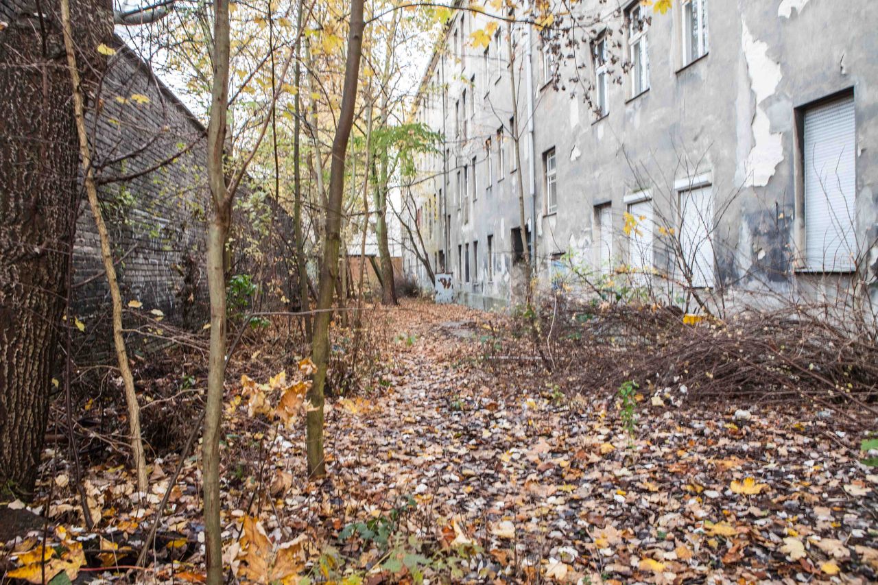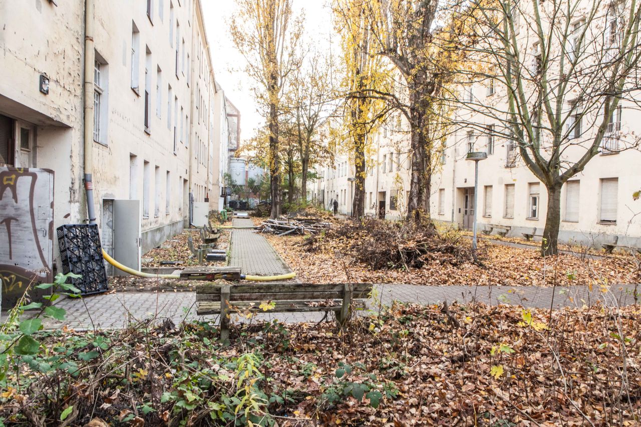 Bei diesem Motiv handelt es sich um einen unsanierten Häuserkomplex aus dem Baujahr 1917. Die insgesamt acht Altbau Wohnhäuser, stehen in 2 Riegeln und umschließen einen begrünten, abgeschirmten Innenhof (1150qm2). Mehrere große Bäume und Sitzbänke befinden sich im großen Innenhof. Es gibt einen weiteren Hinterhof (700qm2) mit morbidem Charme, begrenzt durch eine malerische Backsteinmauer und einen Zaun hinter dem 2ten Wohnhaus.